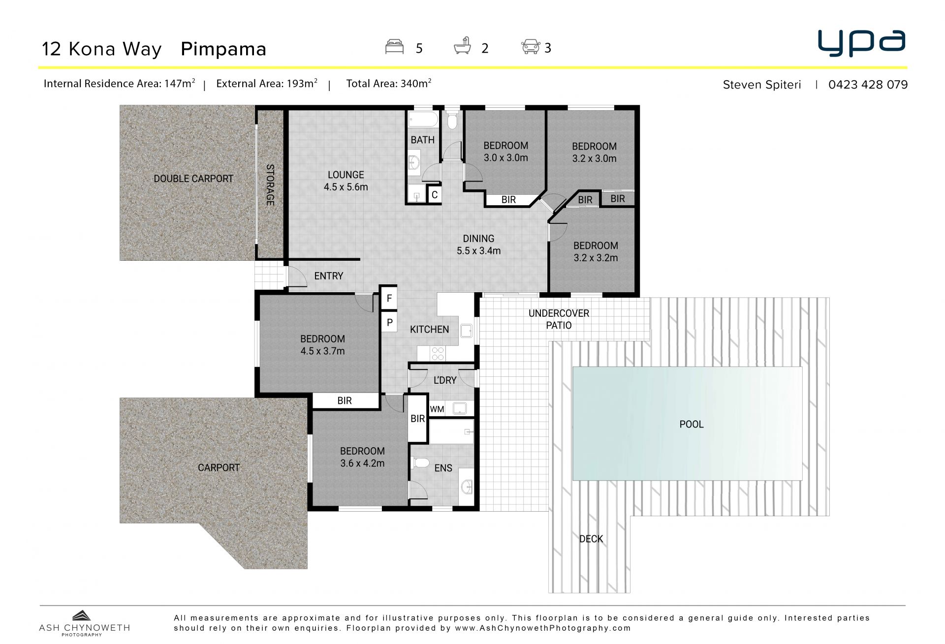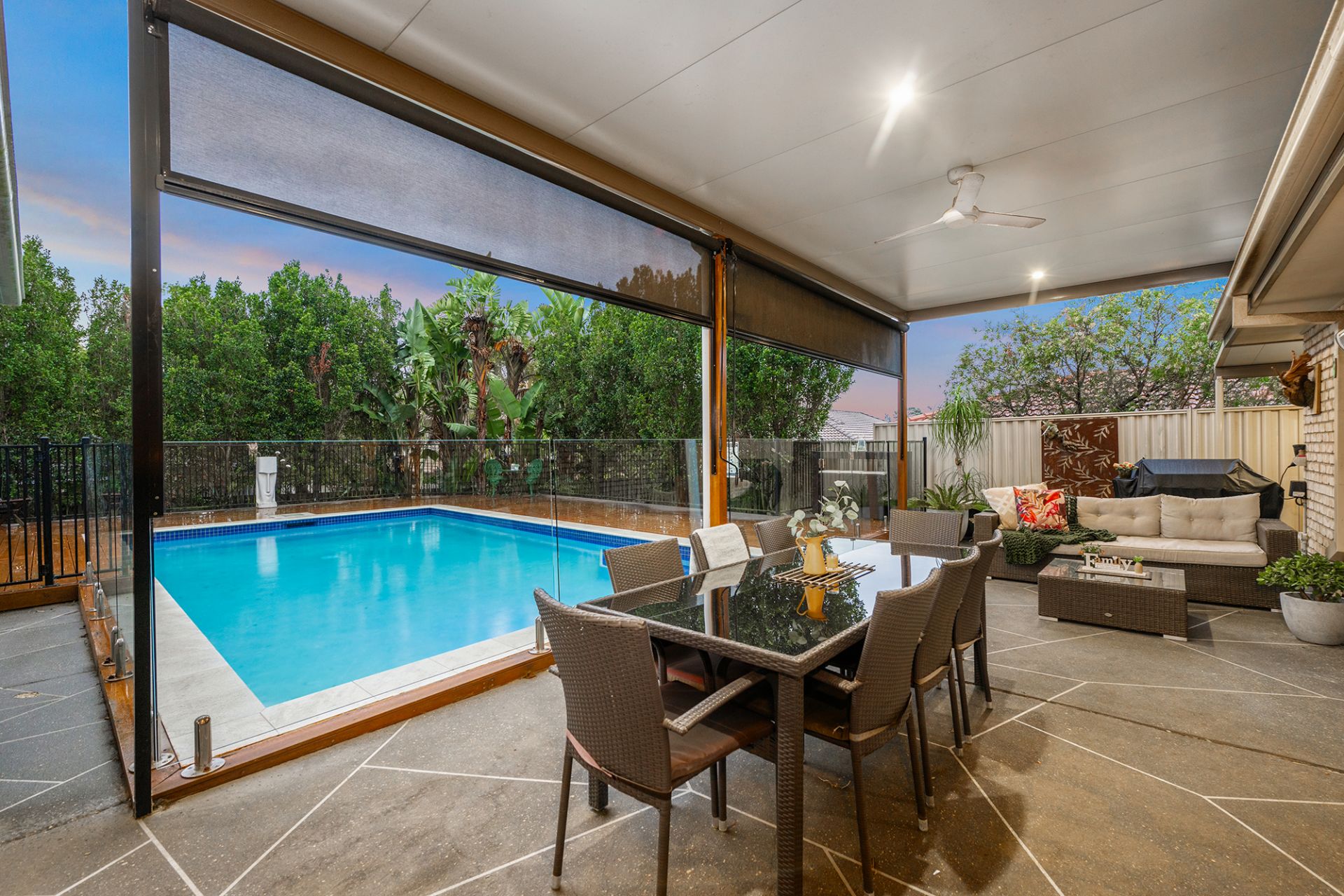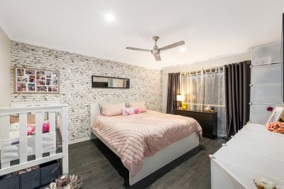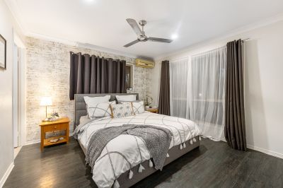 Inside, five spacious bedrooms ensure your family's comfort, each equipped with ceiling fans. Three split systems (in the living area, dining area, and master bedroom) maintain the ideal temperature throughout the house.
