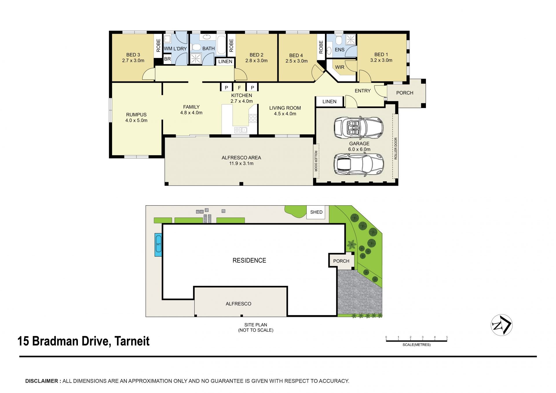 • Outdoor pergola area which can provide an extra double car accommodation with pull down café blinds