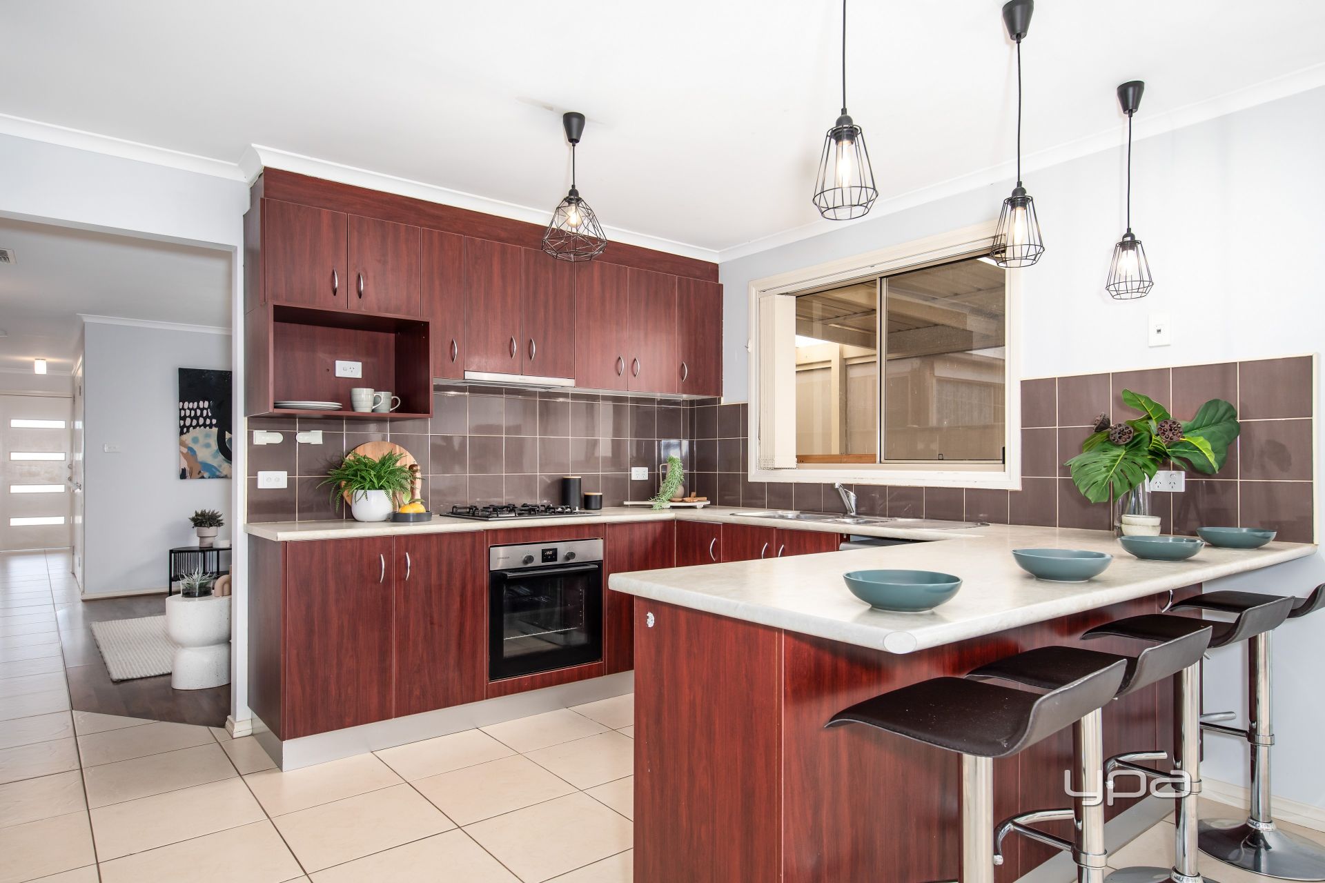 • Kitchen complete with ample cupboard space, stainless steel appliances including gas cooktop, electric oven, range hood, dishwasher and double sink
