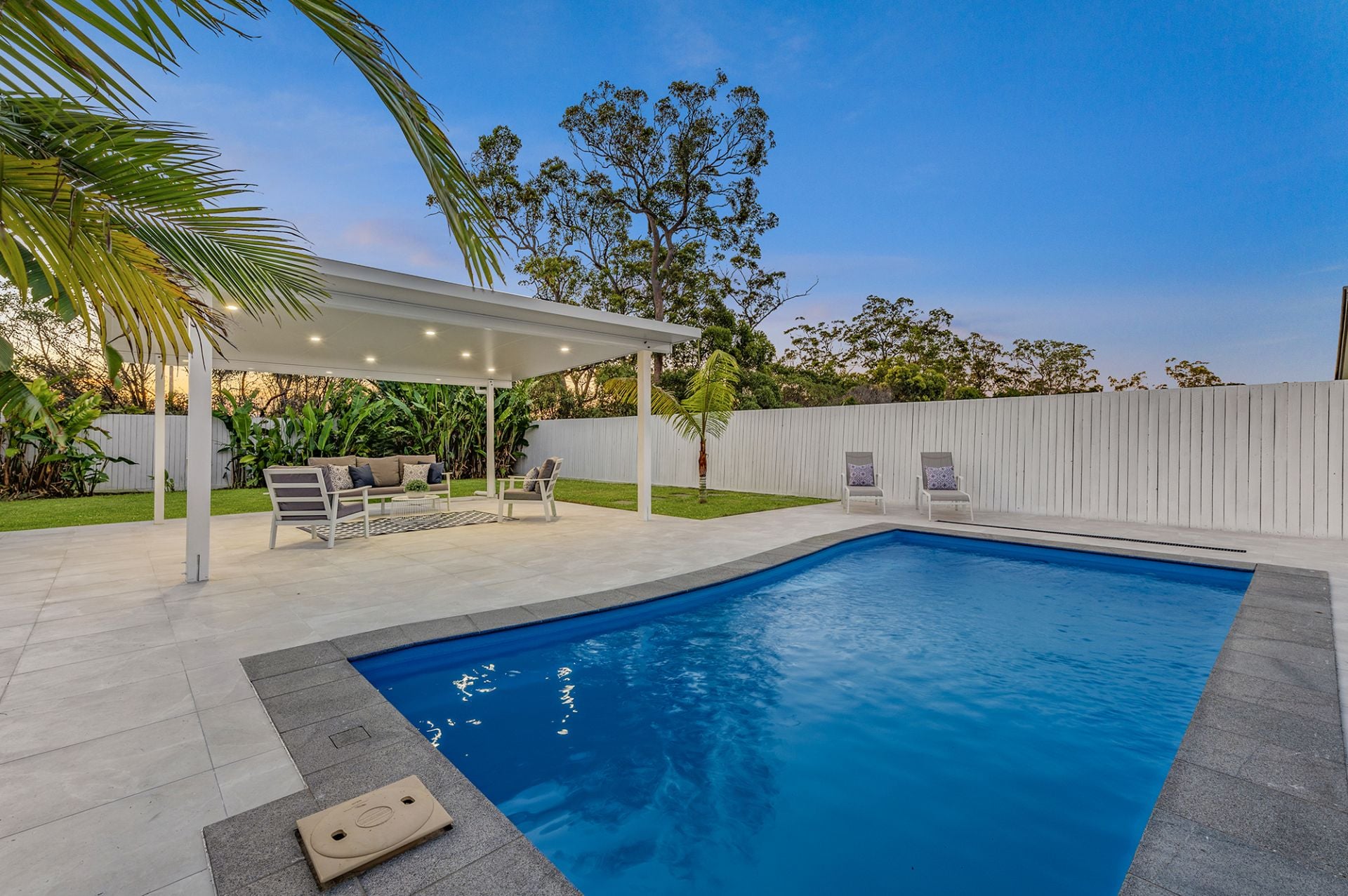 Step outside to a private oasis, complete with a pool featuring new tiles and a pool pergola for relaxation. The landscaped backyard provides the perfect backdrop for outdoor enjoyment.