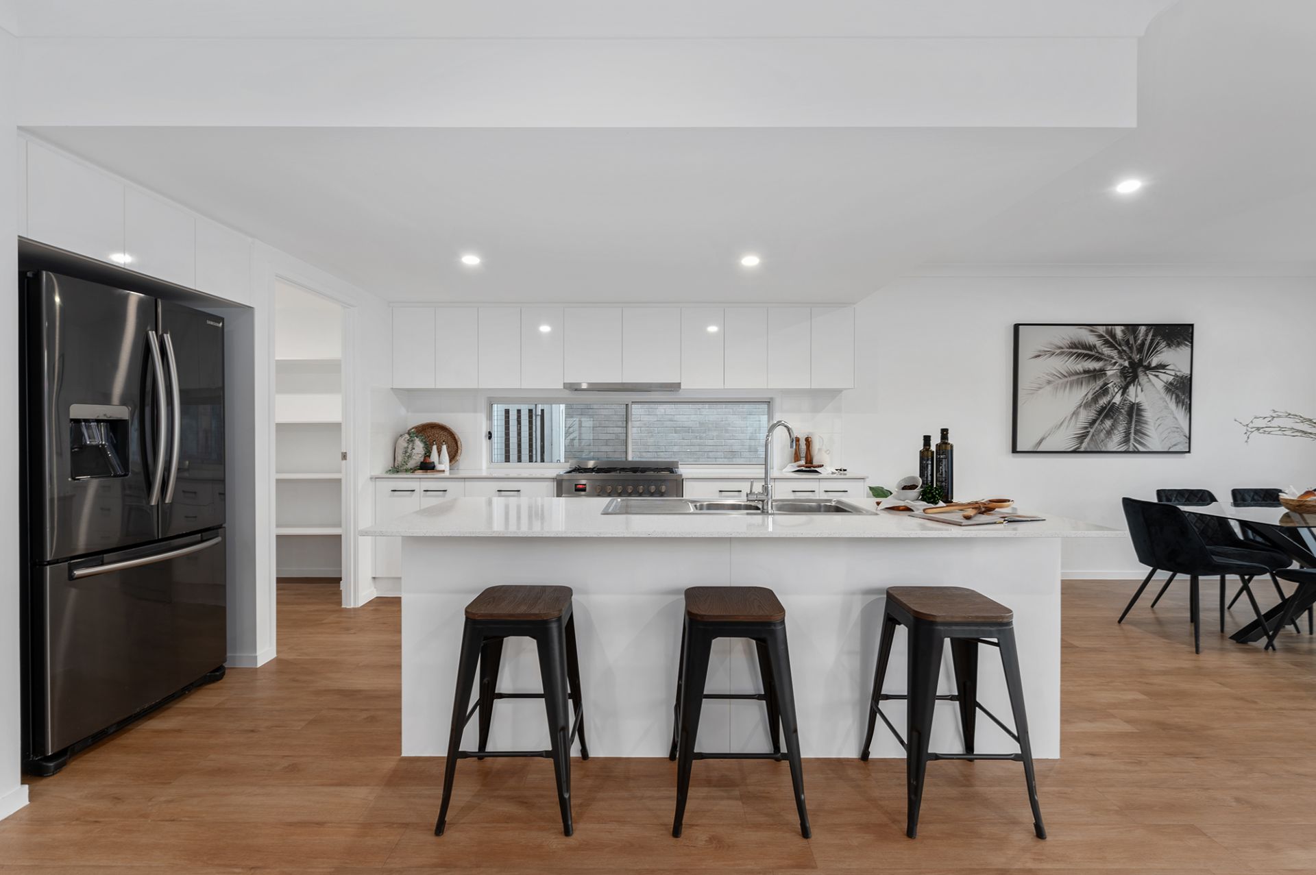 Step inside to discover a thoughtfully designed ground floor featuring open-plan living and dining areas, seamlessly connected and overlooked by a stylish kitchen boasting stone benchtops and 900 mm stainless steel appliances. A walk-in pantry, soft-closing cabinets, and a dishwasher add a touch of practical luxury. A convenient study nook, powder room, and understairs storage enhance the functionality of the space.