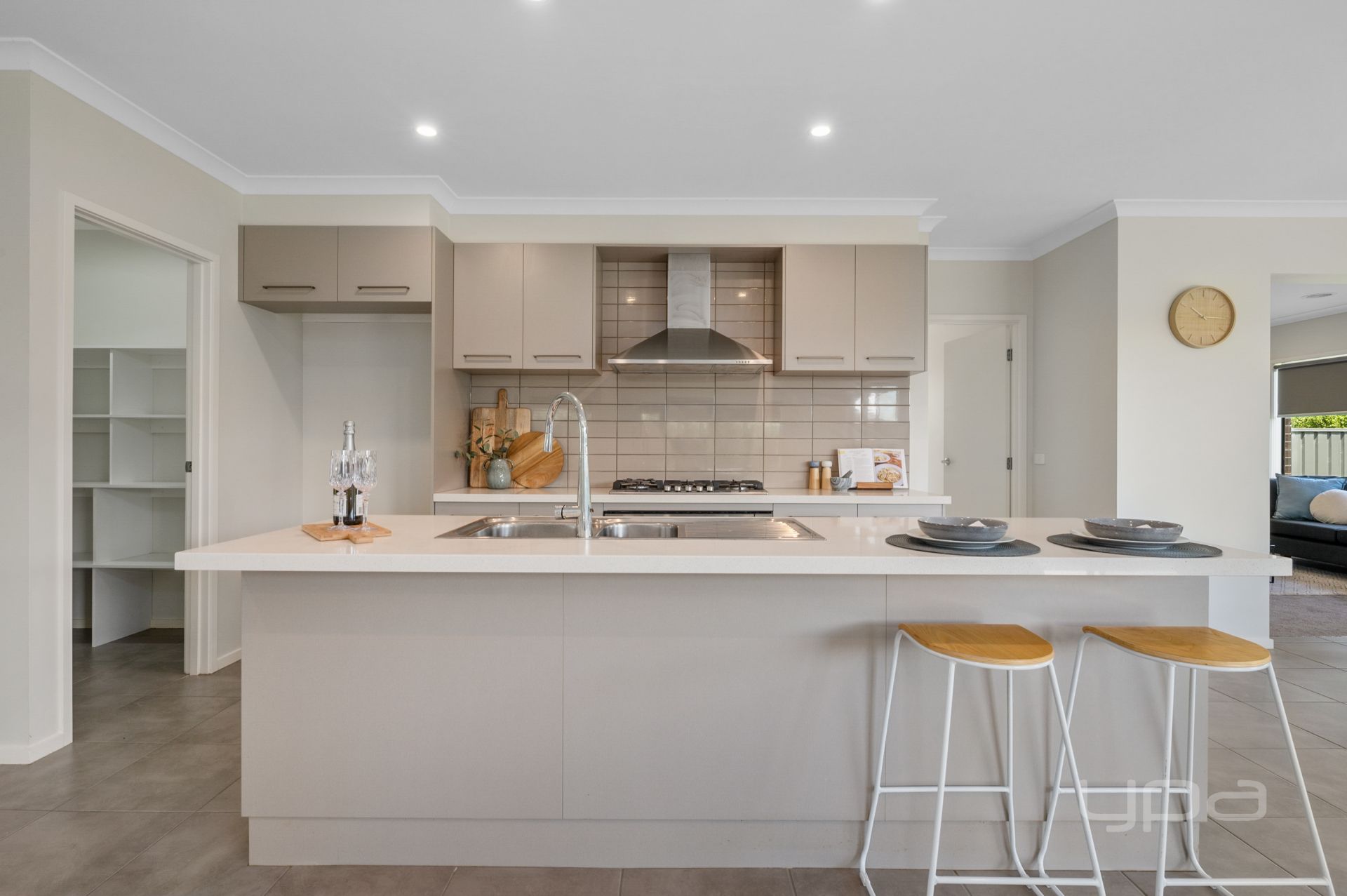 The well designed open modern kitchen comes equipped with some of the finest quality fittings such as; walk-in pantry, 900mm gas cooktop & stove, 40mm stone benchtops, double sink, massive island bench, and ample storage space. The family/meals area seamlessly allows the natural light to flow through all living quarters and the additional formal living zone (theatre/rumpus) so there is room for everyone.