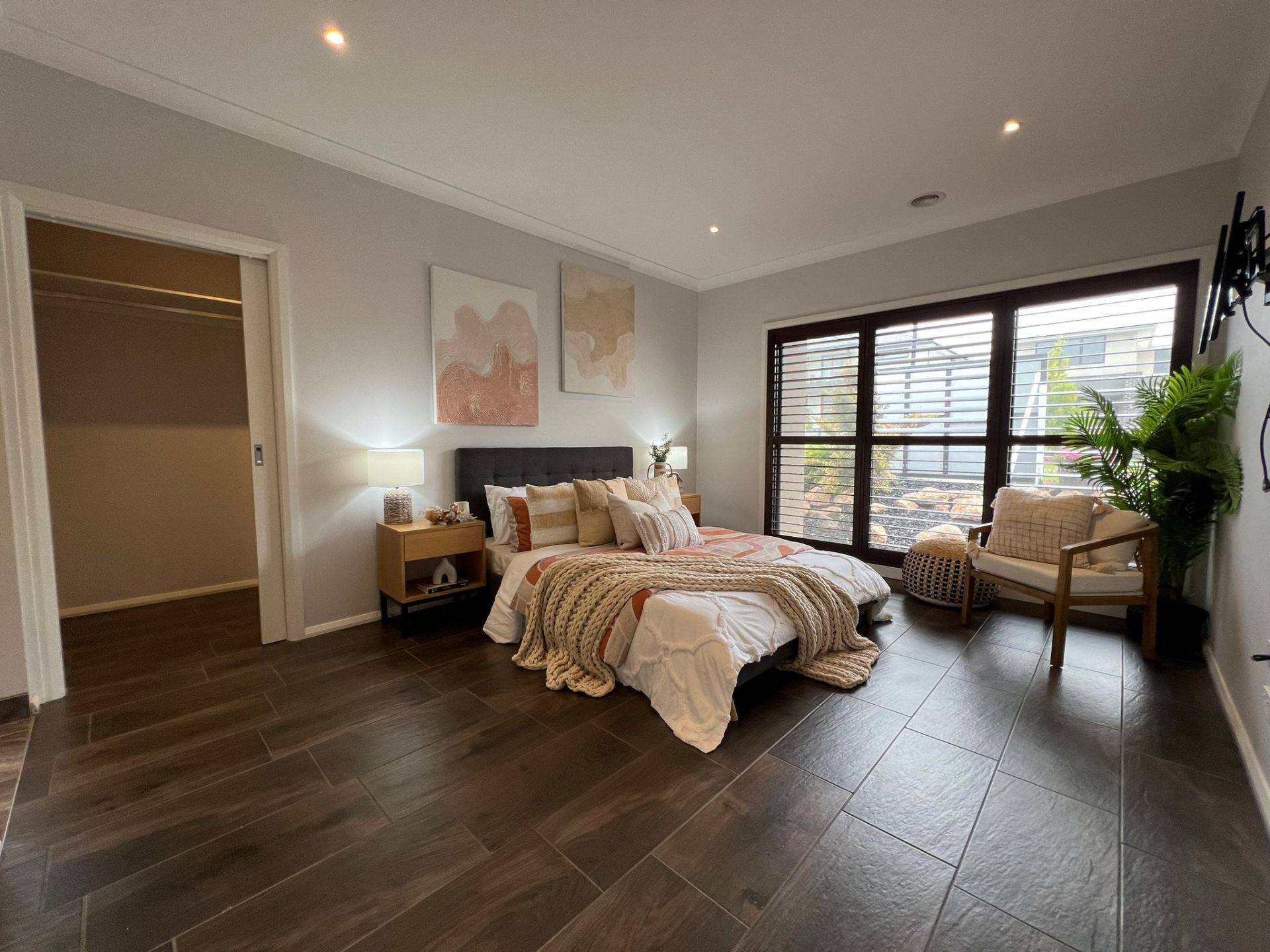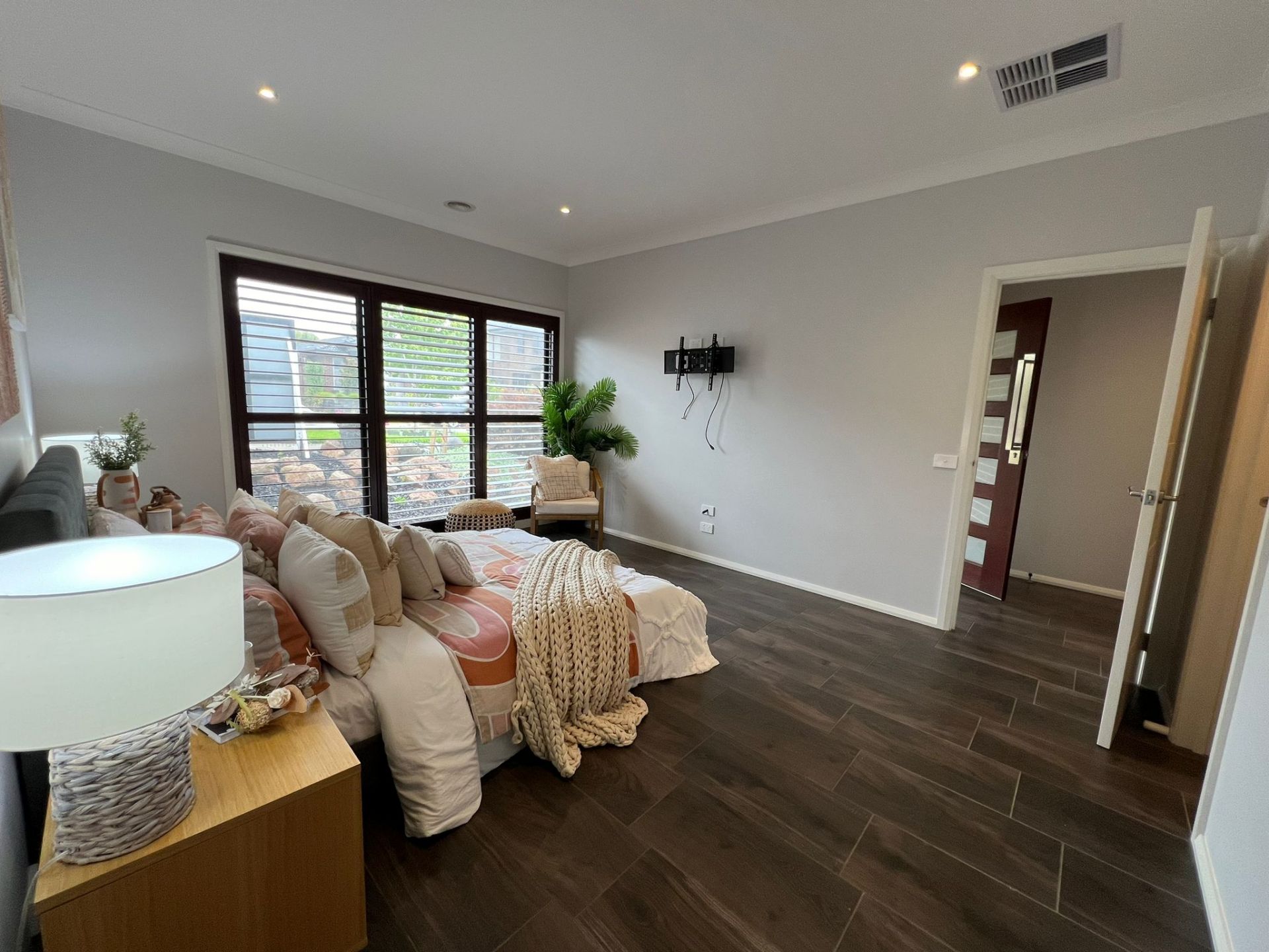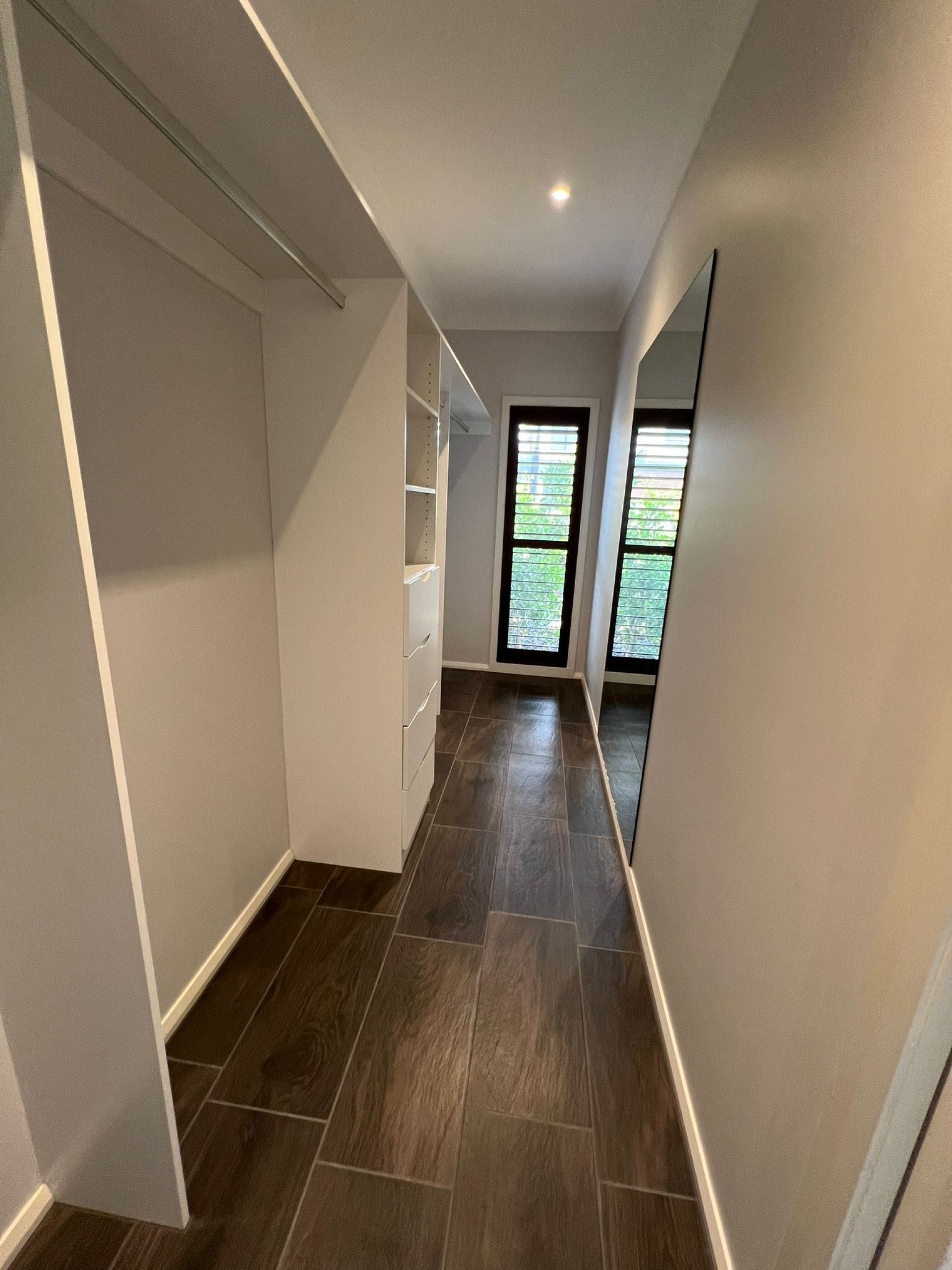 Master Suite Comfort: The master suite offers convenience with walk-in robes and a full-length mirror.