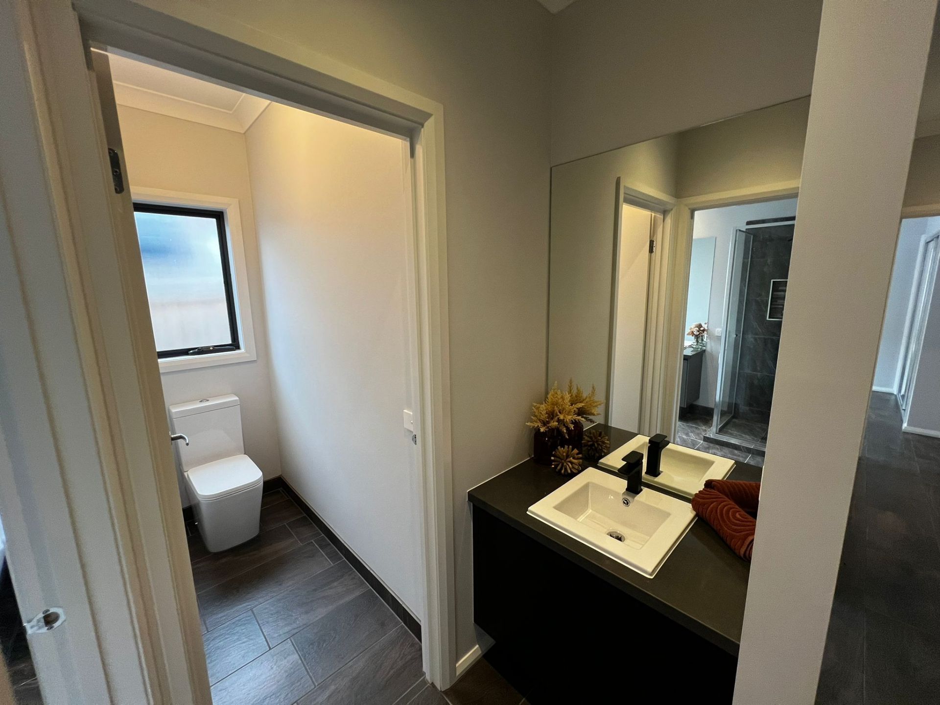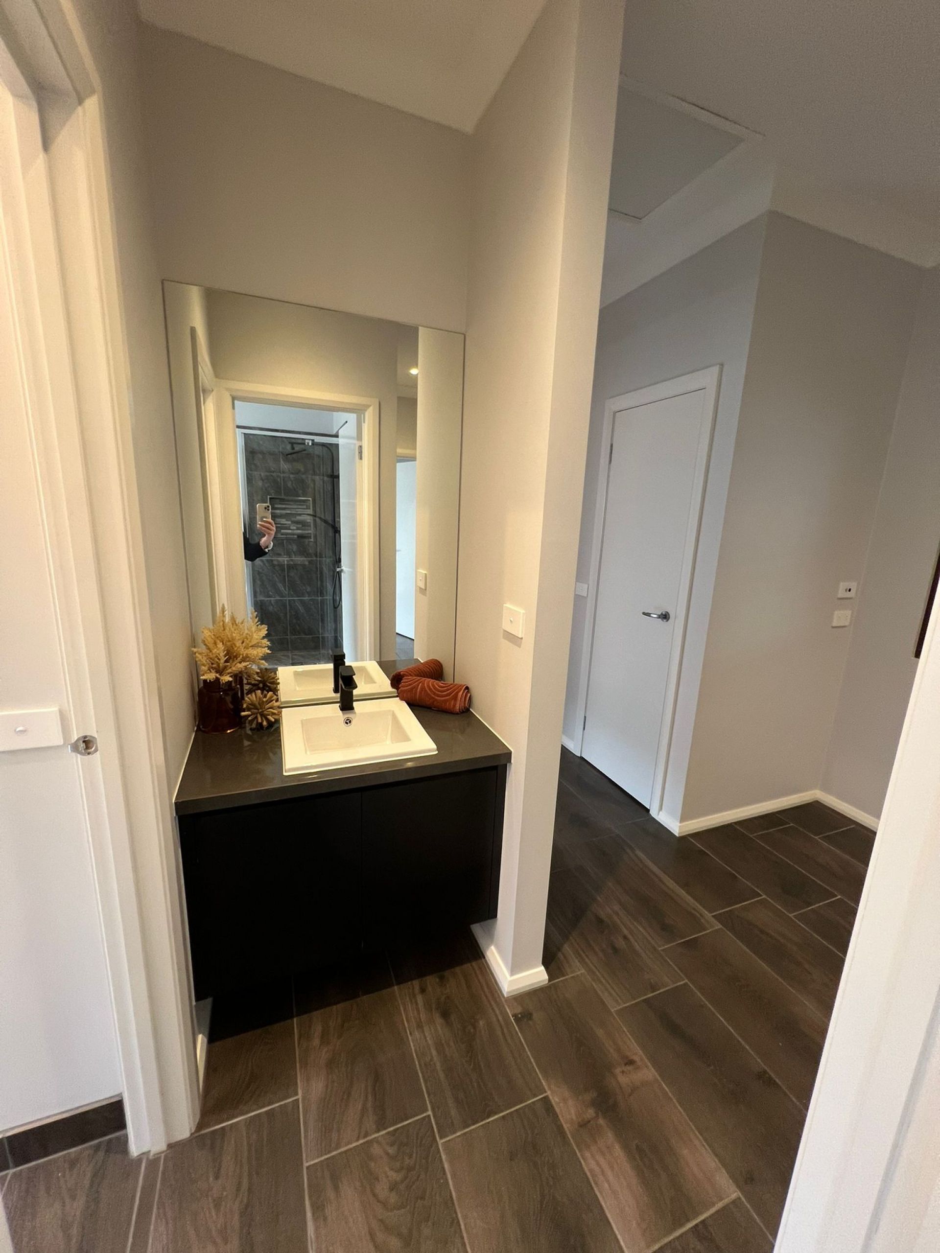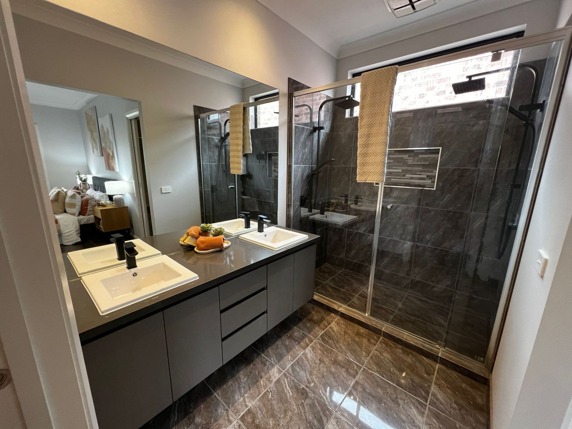 Master Suite Comfort: The master suite offers convenience with walk-in robes and a full-length mirror.
