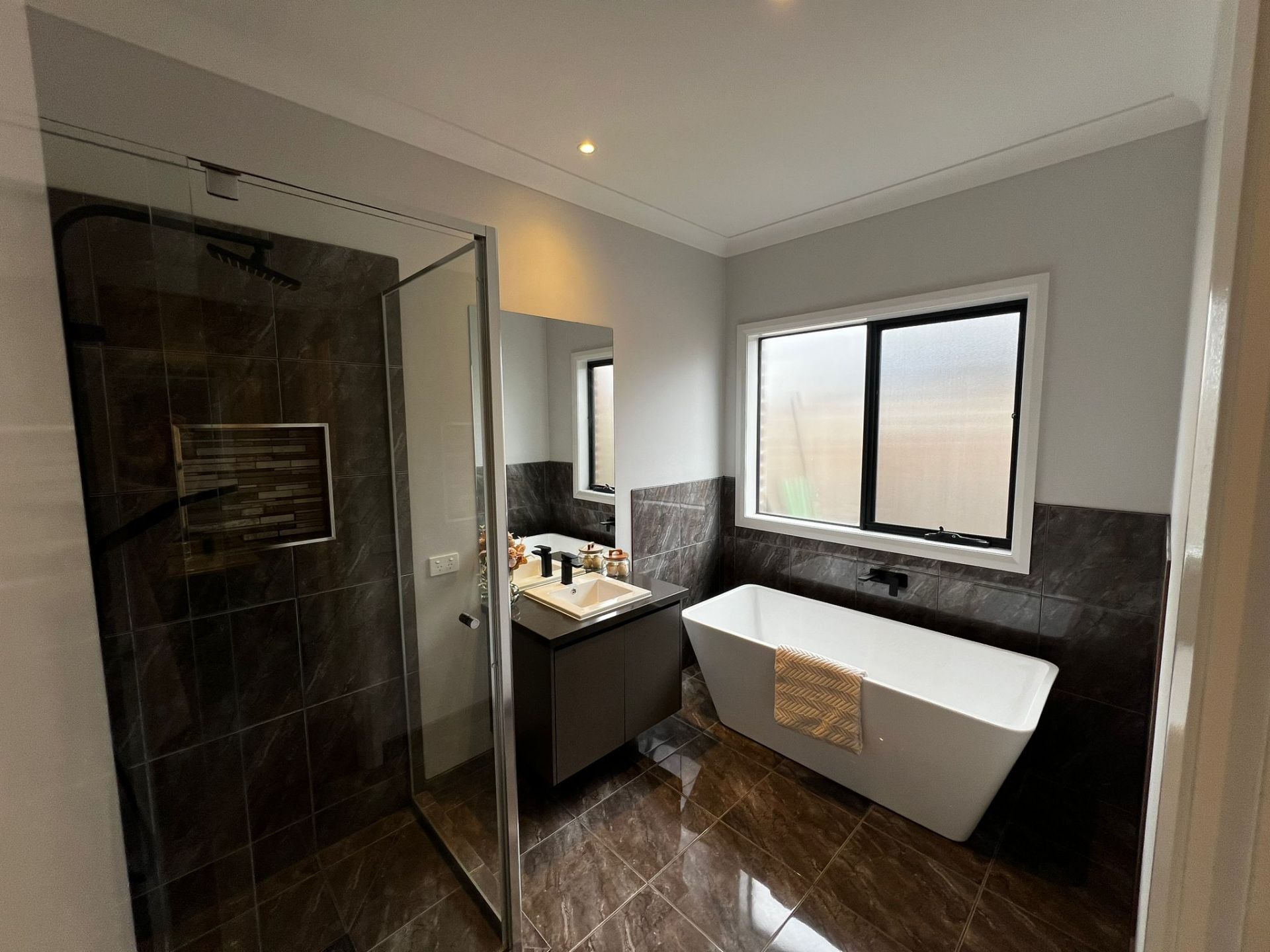 Relaxing Bathrooms: Unwind in the luxurious bathrooms featuring modern fittings and a freestanding bath.