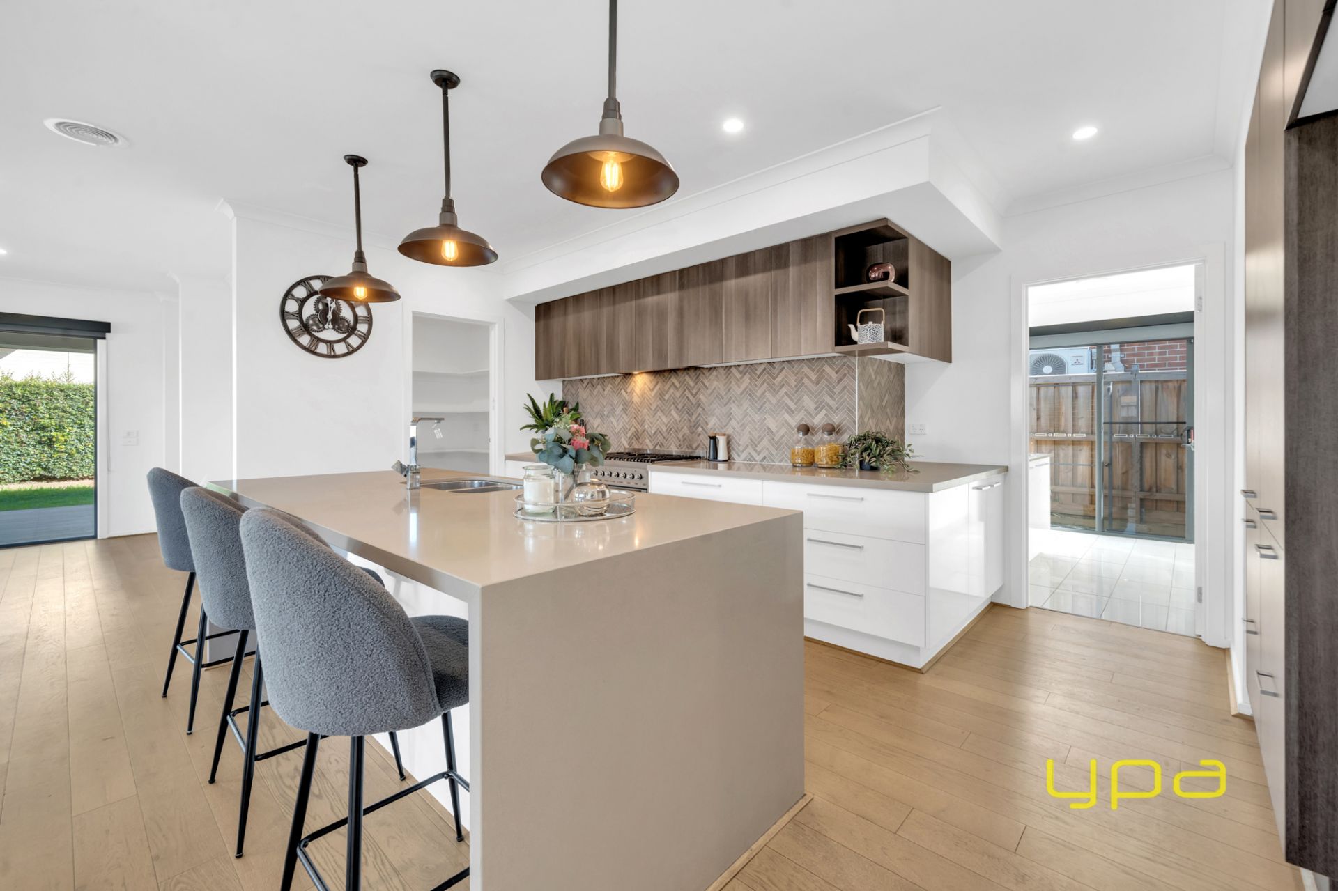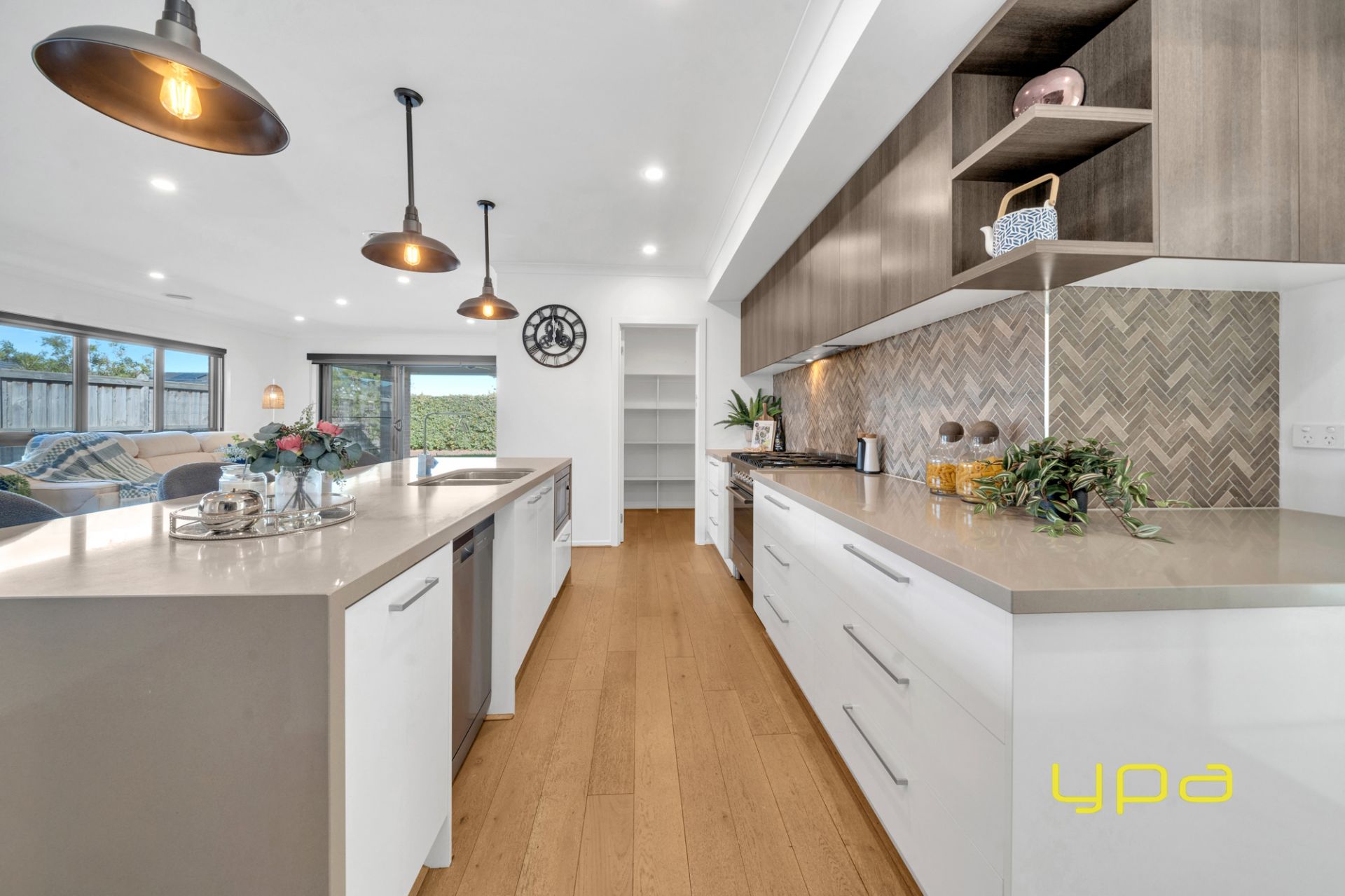 • Modern open plan kitchen with stainless steel appliances (900mm oven and stove), walk-in pantry and ample storage