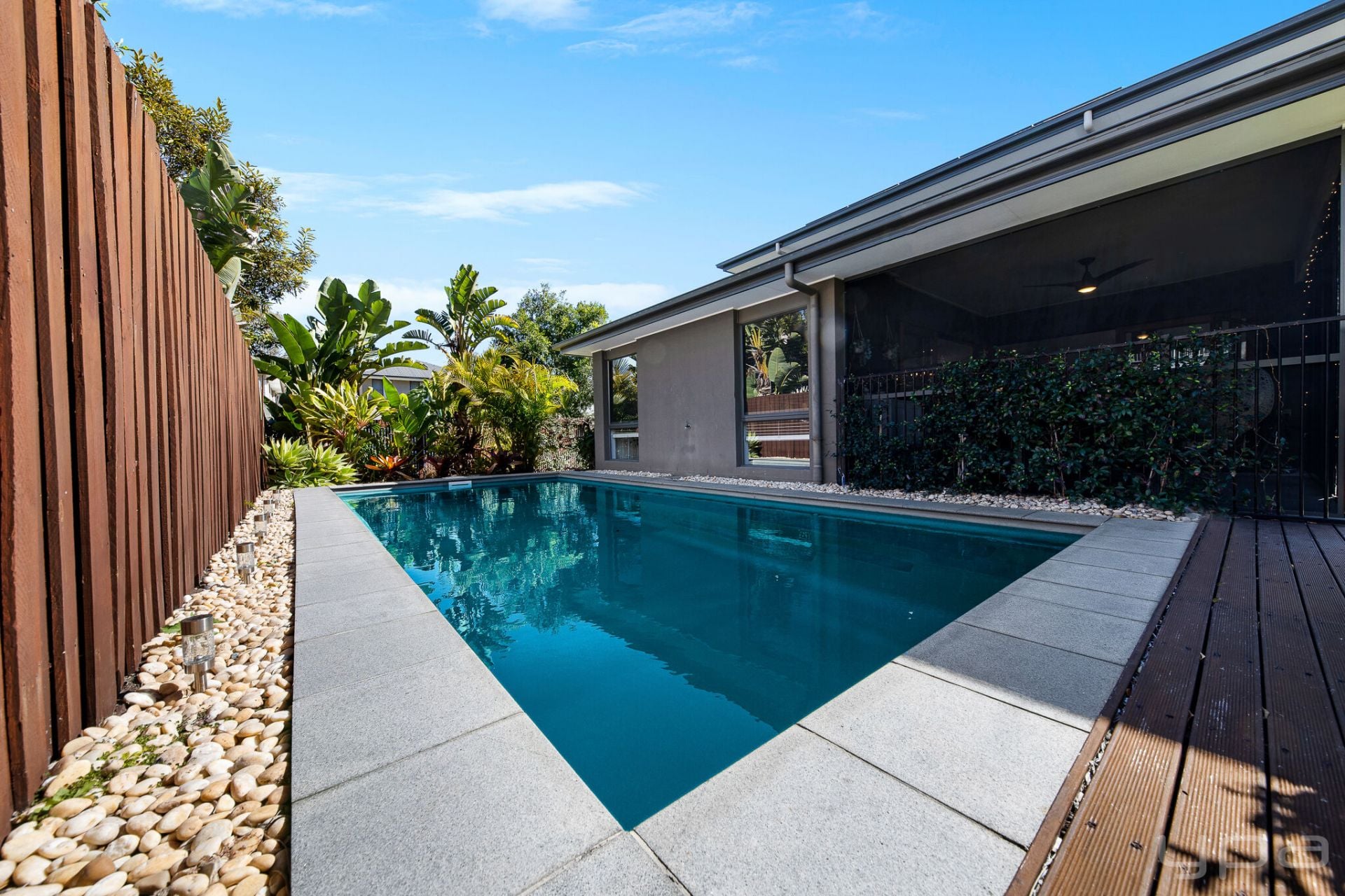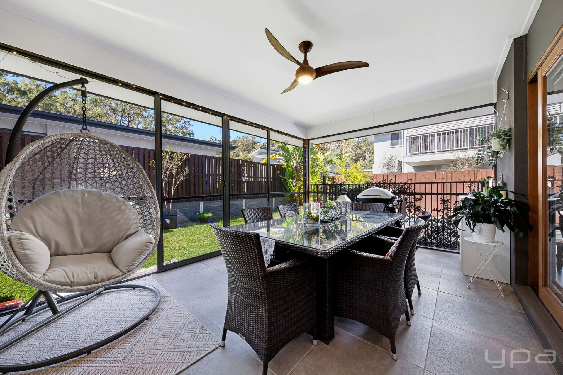 Outdoor Living: Expansive outdoor living area, perfect for dining and entertaining. Fully enclosed with security screens for added safety
