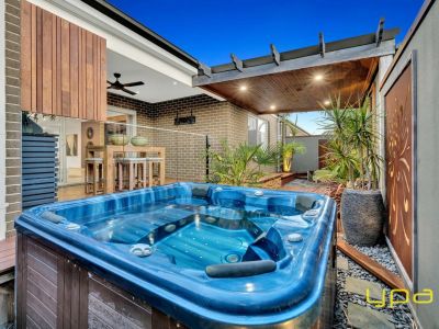 The open floor plan and neutral tones make this space feel light and spacious. The contemporary kitchen is a chef's dream, with premium fittings and appliances, breakfast bar, and a walk-in pantry. This area flows effortlessly into the stylish dining and living zones, which extend to the outdoor area and features a spacious decked alfresco with a built-in BBQ, perfect for entertaining and dining outdoors. Relax in the luxurious spa or gather around the fire pit for cosy evenings with family and friends.