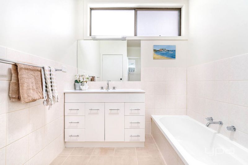 - Three large bedrooms all with built-in mirrored robes and ceiling fans.