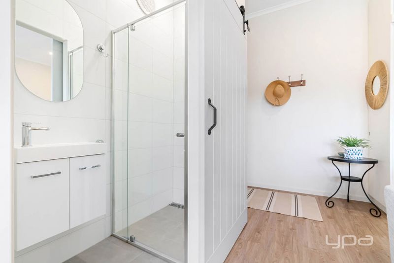 - Generously sized rear outdoor lounge area and undercover entertaining space complete modern pull down café blinds.
