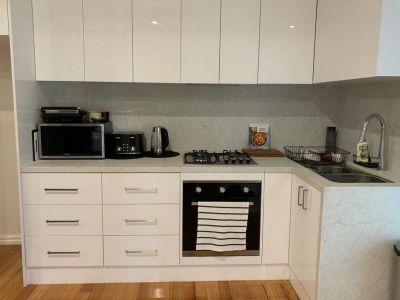 Comprises entrance hall, spacious living-room with split system, kitchen with gas and electric cooking appliances , 1 bedroom with built in wardrobes, bathroom, laundry . Polished floorboards and all utilities included.