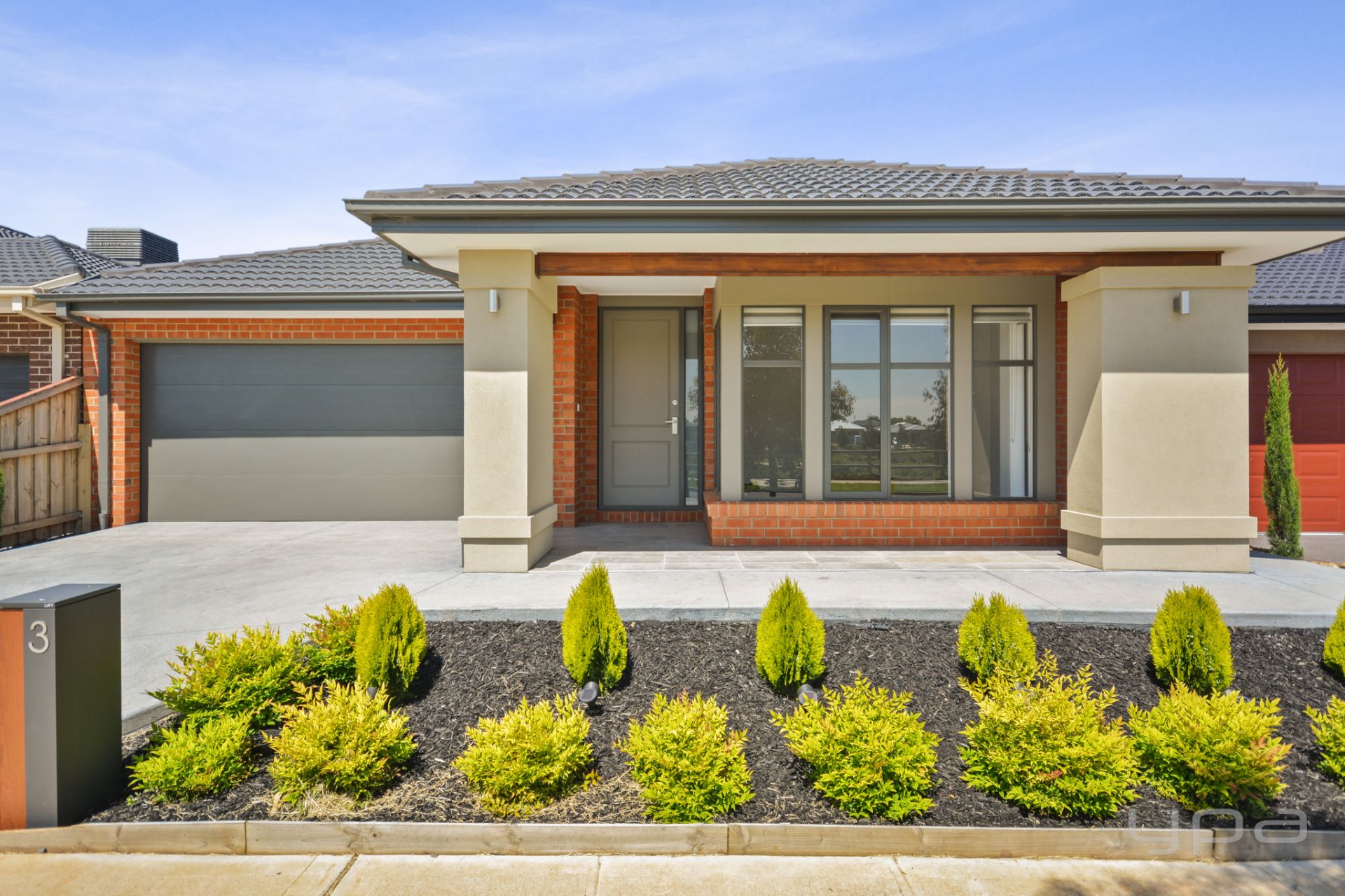 Landscaped front lawns