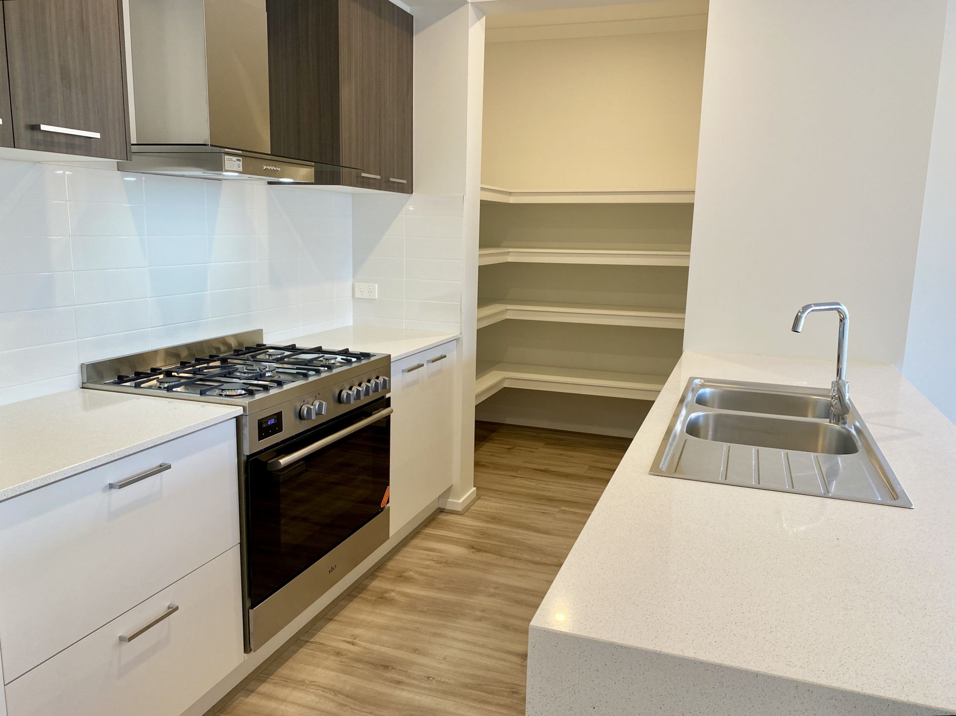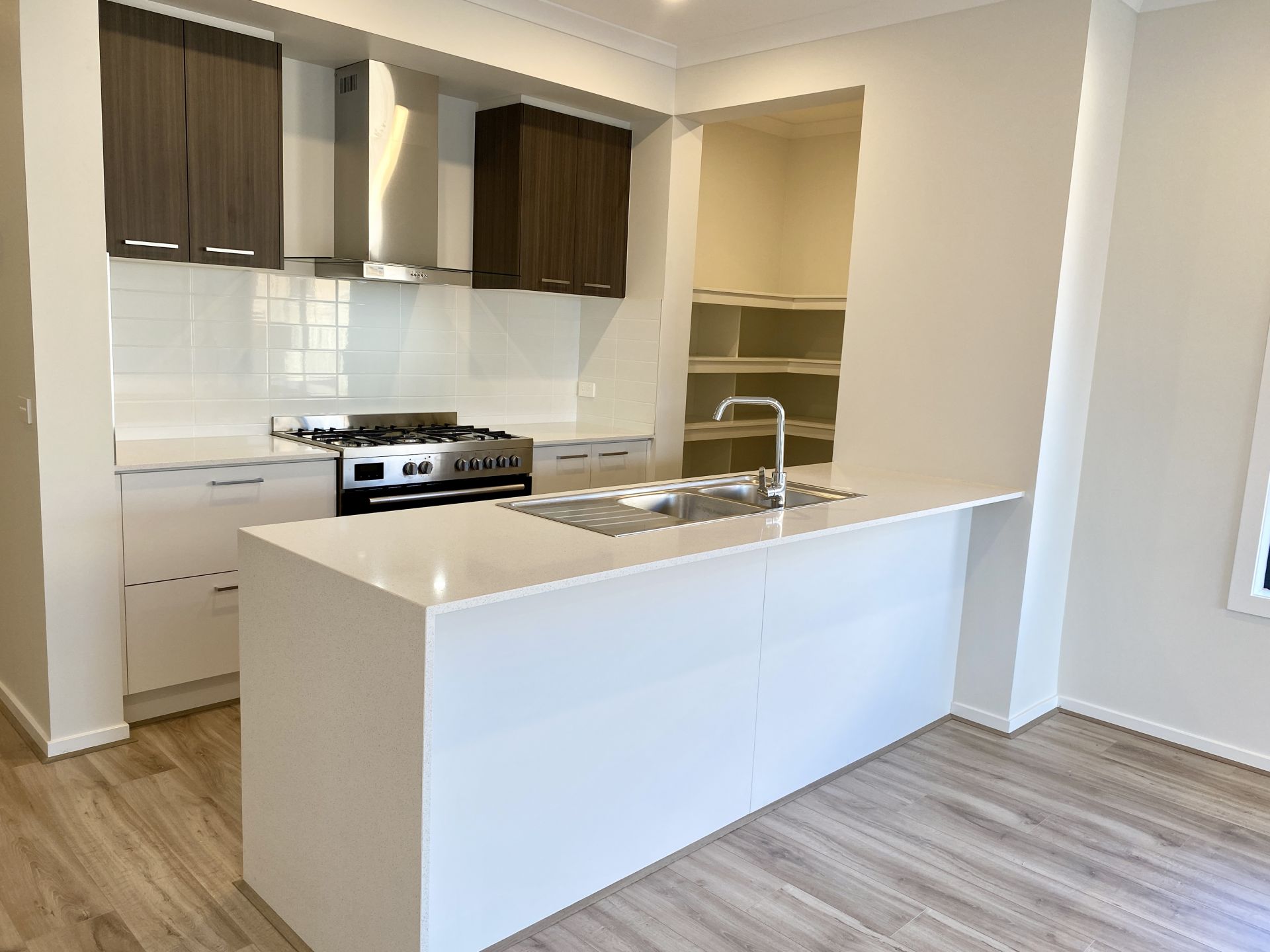 - Sparkling kitchen with 900mm gas stove, stainless steel appliances, kitchen island with room for bench seating and walk in pantry