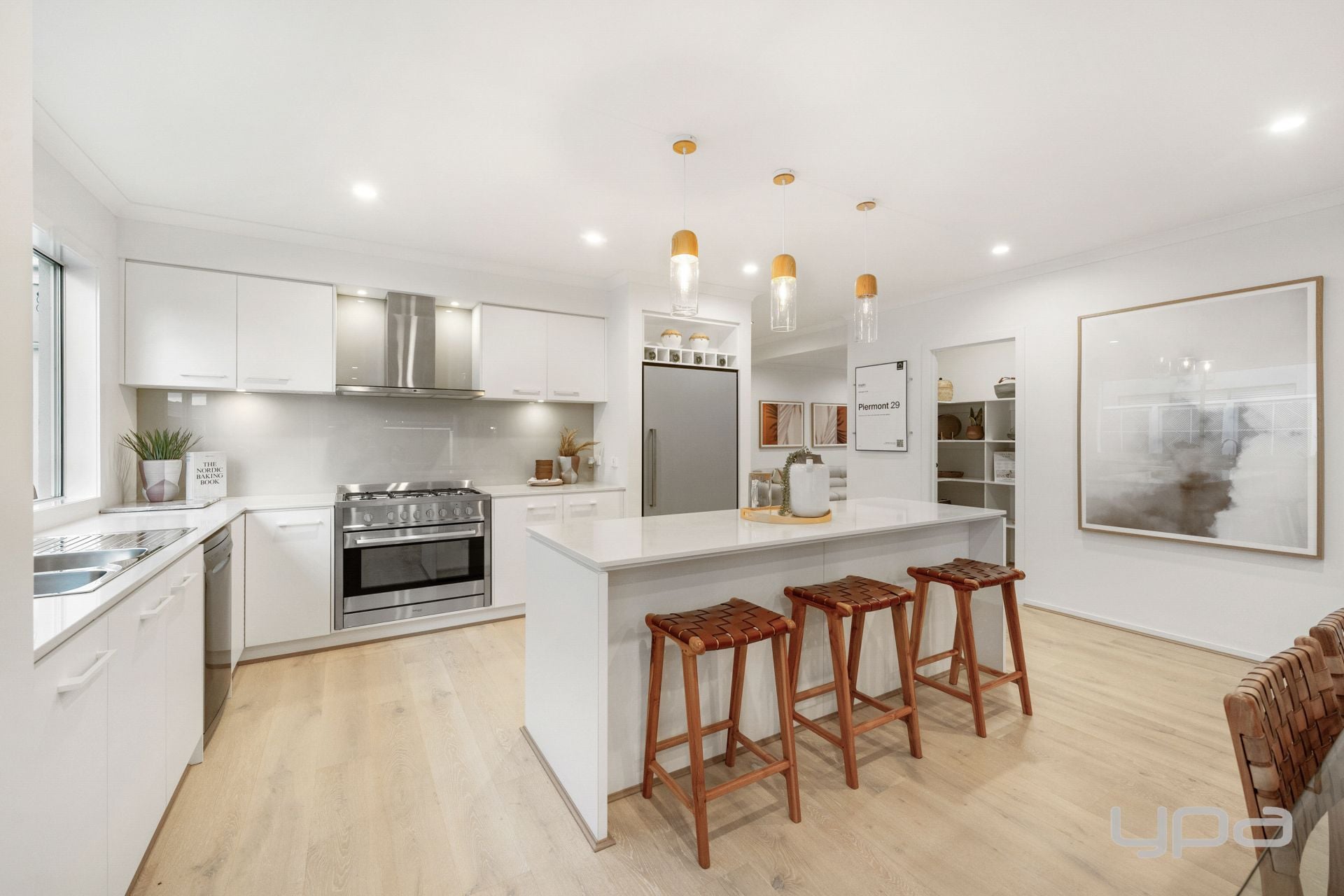 • Kitchen complete with caesar stone bench tops, walk-in pantry, ample cupboard space, stainless steel appliances including 900mm freestanding oven with gas cooktop, inbuilt microwave, range hood, double sink and dishwasher