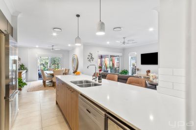 Entertainer's Delight This home was made for those who love to entertain. Imagine hosting friends and family in the expansive alfresco area, where you can relax and enjoy the serene views of the golf course as they putt into the tee just beyond your backyard. The beautifully landscaped gardens provide a lush, green backdrop, making every gathering feel special. The open-plan kitchen, complete with sleek stone benchtops and a walk-in pantry, makes preparing meals a pleasure, whether you're cooking for two or twenty.