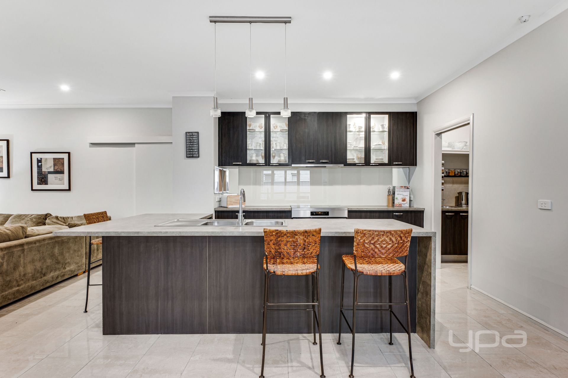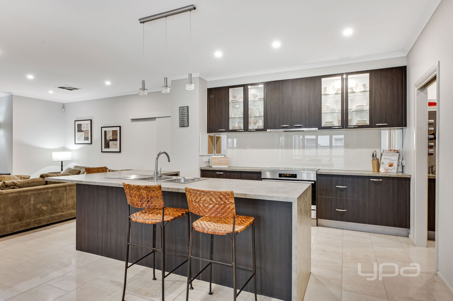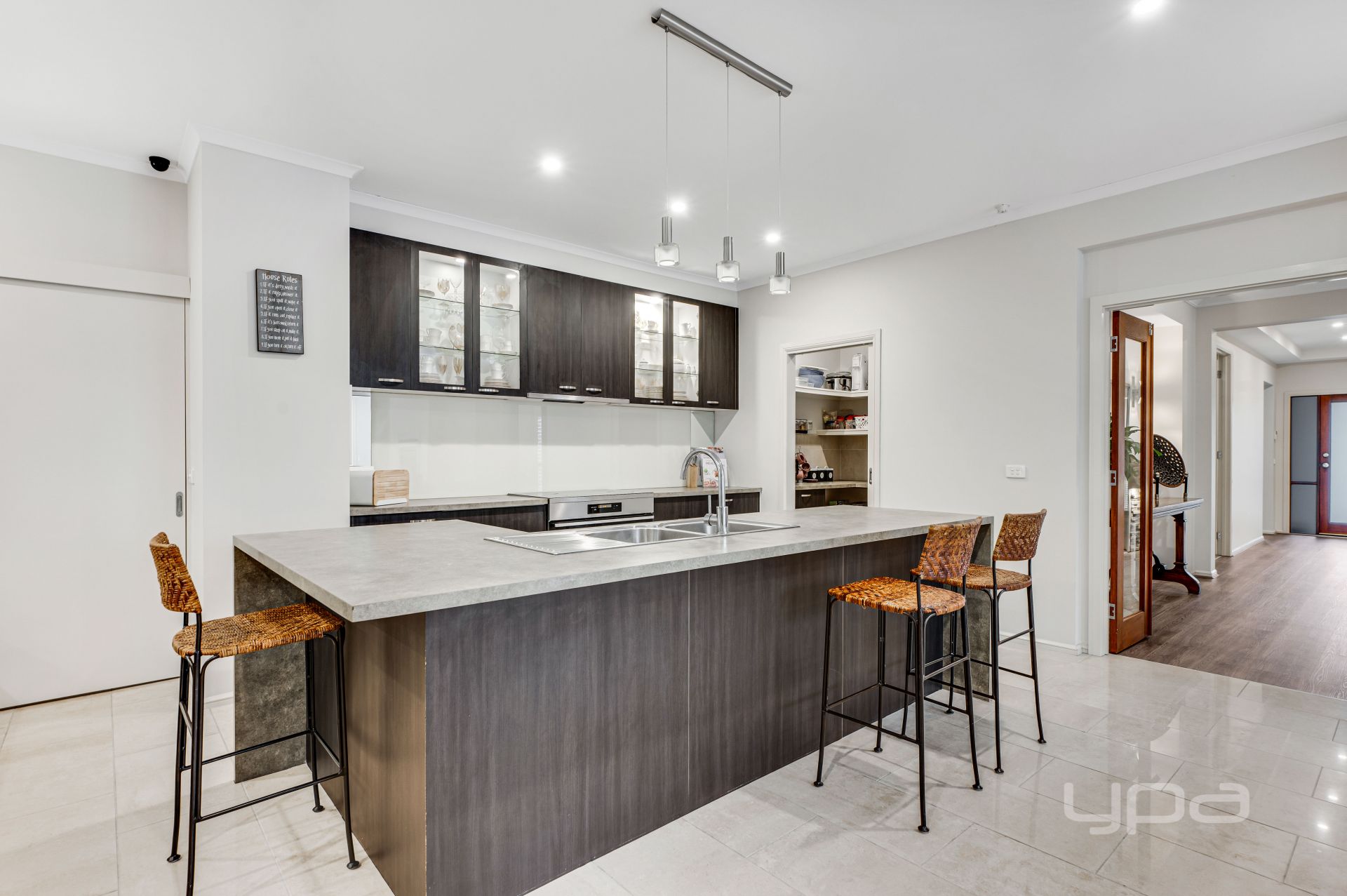 • Stylish kitchen with butler's pantry & with top-of-the-line appliances, ample storage, and a large island bench