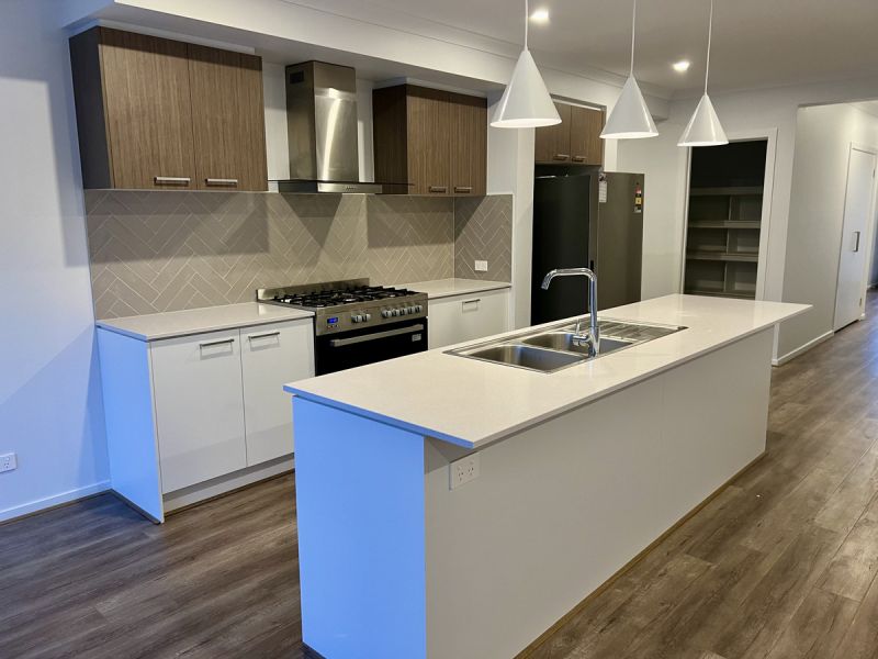 The open-plan living area is bright and inviting, flowing seamlessly into a well-equipped kitchen which features laminae cupboards and stone benchtops, plenty of storage space with the additional walk in pantry area, stainless steel 900ml gas upright stove and oven. dishwasher and room for a big fridge and ample bench space at the breakfast bar at meal times.