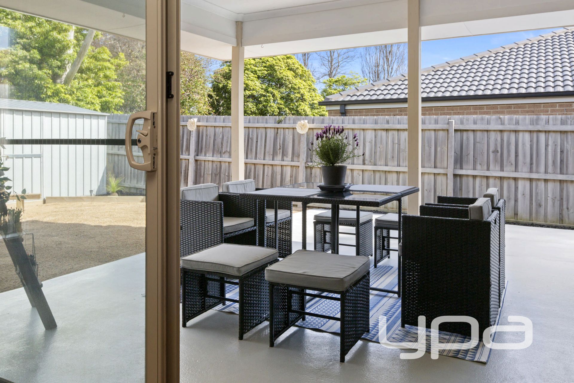 • Separately fenced in part of the backyard, ideal for pets or adding an outdoor spa