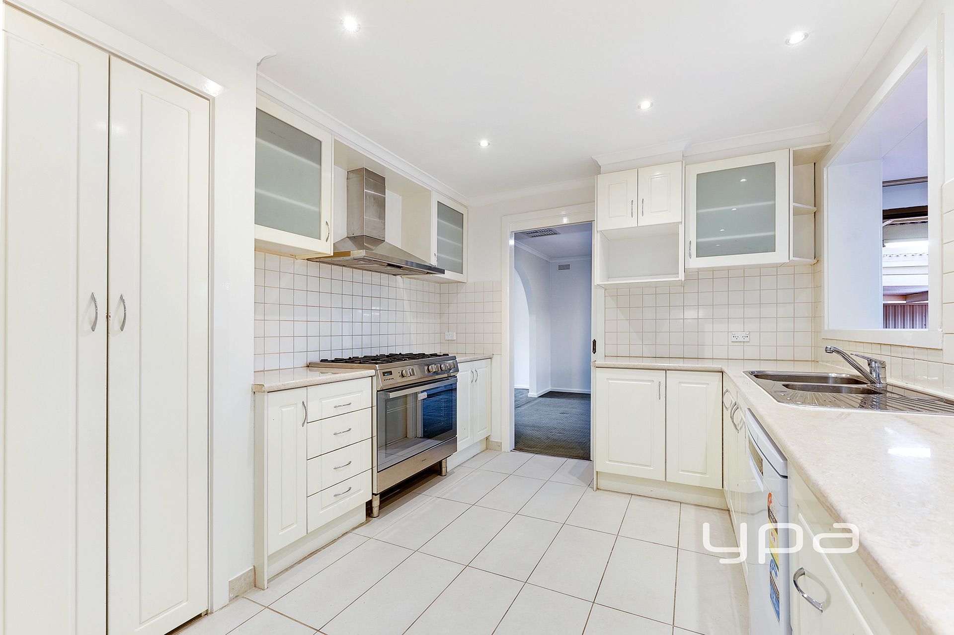 Fully equipped kitchen with convenient servery window and fitted with S/S Technika 900mm up-right stove/canopy rangehood, dishwasher, double sink, ample cupboard space with practical breakfast bench and a much desired walk-in pantry.