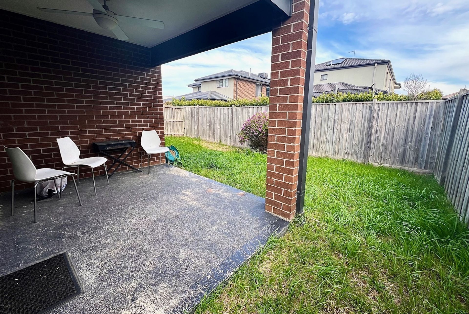 - Glass sliding doors opening up on to a concreted undercover al fresco ✅