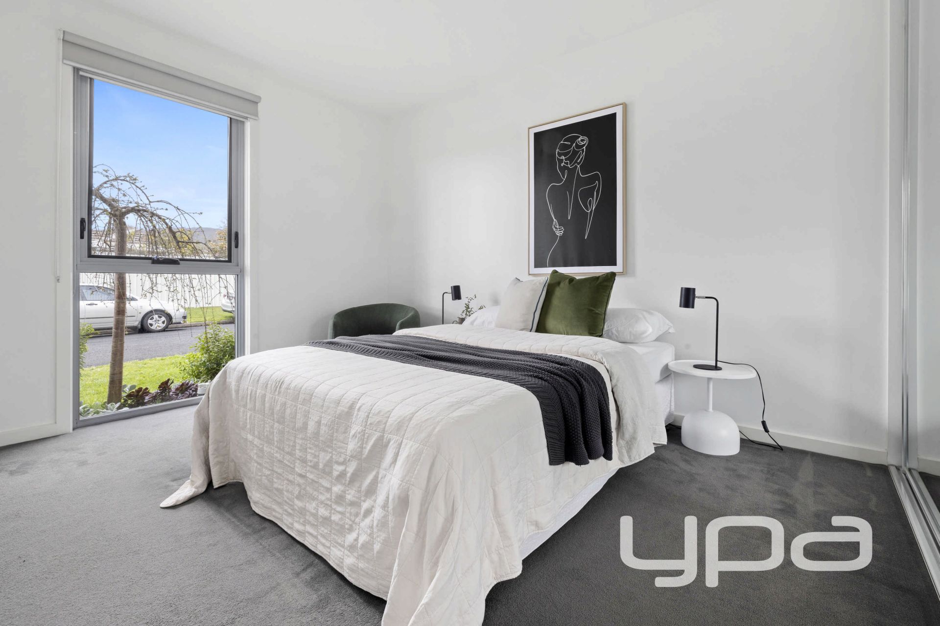 • Carpet in the Bedrooms, Hardwood Floorboards in the Living areas