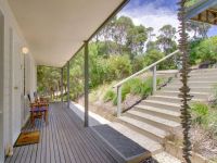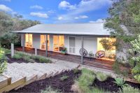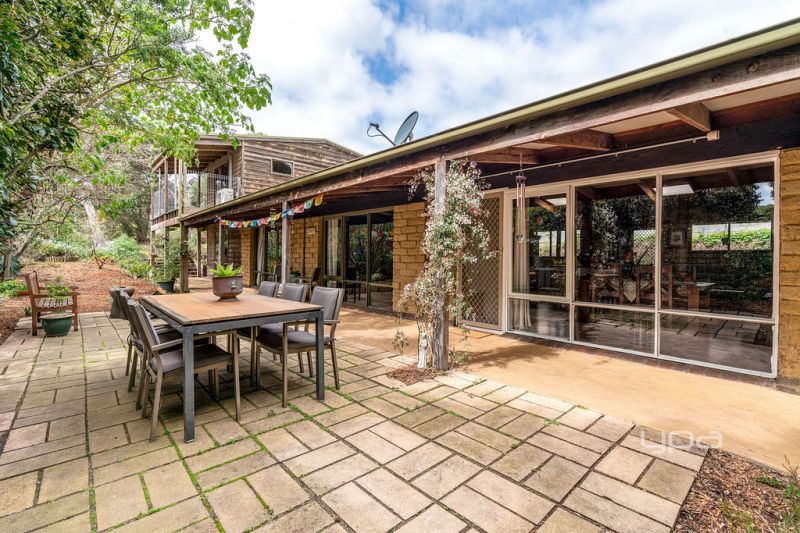 Situated on a large, lush block, just 1km from Number Sixteen Beach and the local general store, this wonderous property combines privacy with necessary convenience. Inside, you'll find four spacious bedrooms, a single bathroom, and two expansive living areas, providing ample room for family and friends. Through the use of innovative passive design, the natural insulating properties of the mud brick, as well as the home's northern orientation affect the internal climate of the home – achieving thermal comfort with minimal heating or cooling.