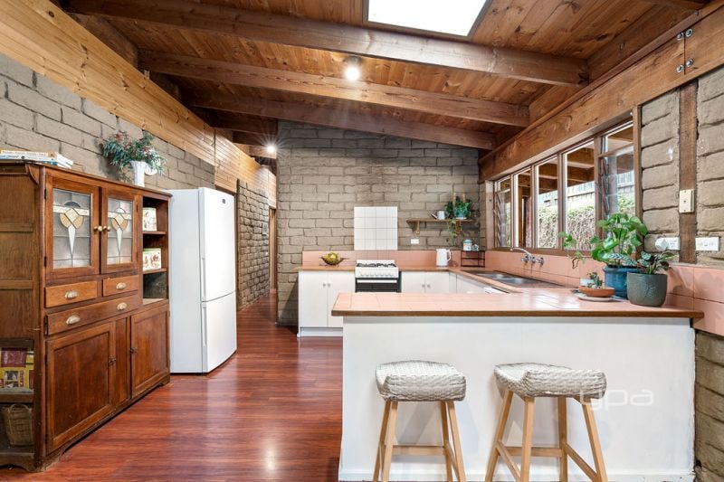 Artfully crafted and thoughtfully built with a deep respect for the local environment, this unique and bespoke home was constructed almost exclusively using locally sourced materials from the Mornington Peninsula region, including hand-made mud bricks, modelled using clay from Red Hill. This nod to authentic Australian building techniques has resulted in a home that shines with natural beauty and a deep earthy aesthetic.