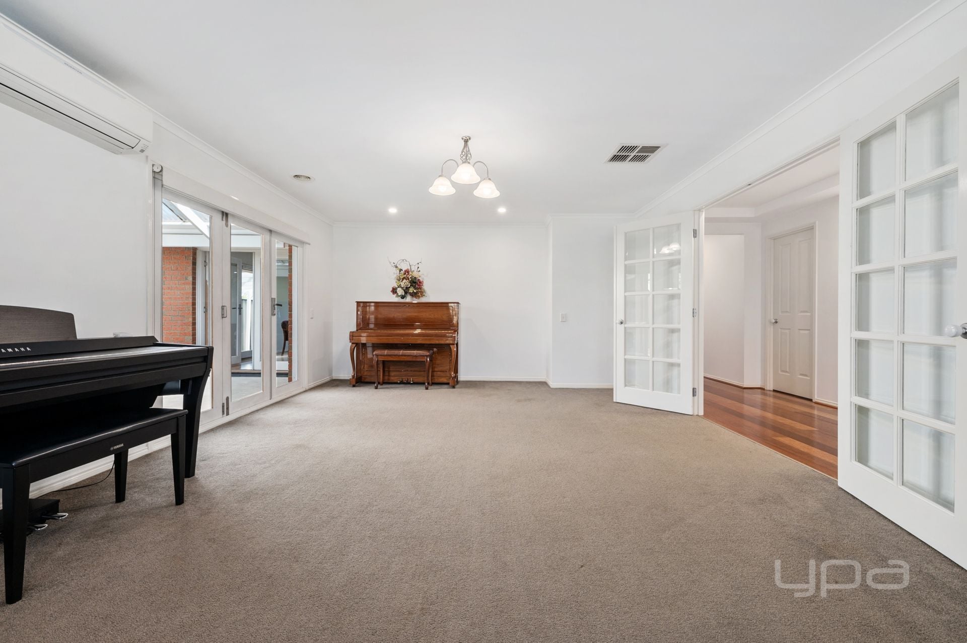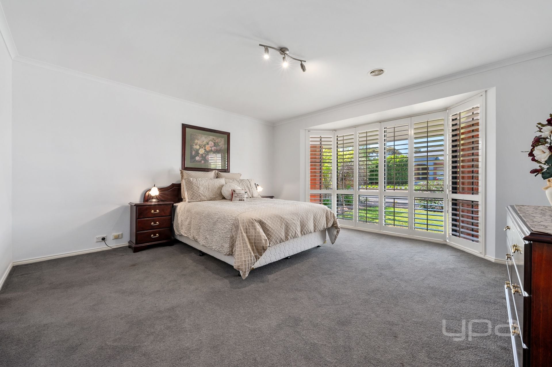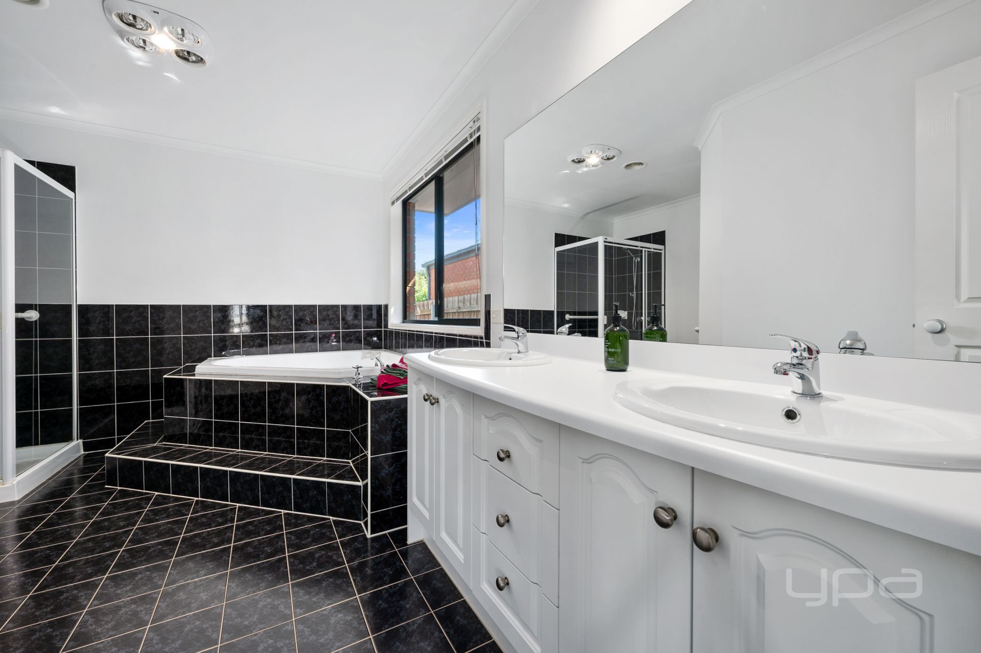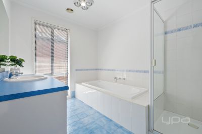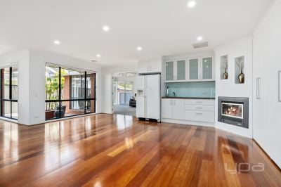 Walking through the front door, you will immediately notice the larger hallway providing space for everyone and bulkhead with feature led downlights creating a sense of luxury. The main bedroom situated at the front of home is great in size and features huge bay windows with plantation shutters allowing natural light to soak into your space. This is further complimented by the walk-in robe, and stunning ensuite that boasts a double vanity, heat lamps and a spa creating the ideal place for comfort. The massive first living area is separated by double French doors, creating an entertaining space or massive kids play area, with feature light fixtures, split system and plenty of natural sunlight that further compliment the space. Adjacent to this sits the convenient powder room, providing an ideal space for guests and visitors to utilise.