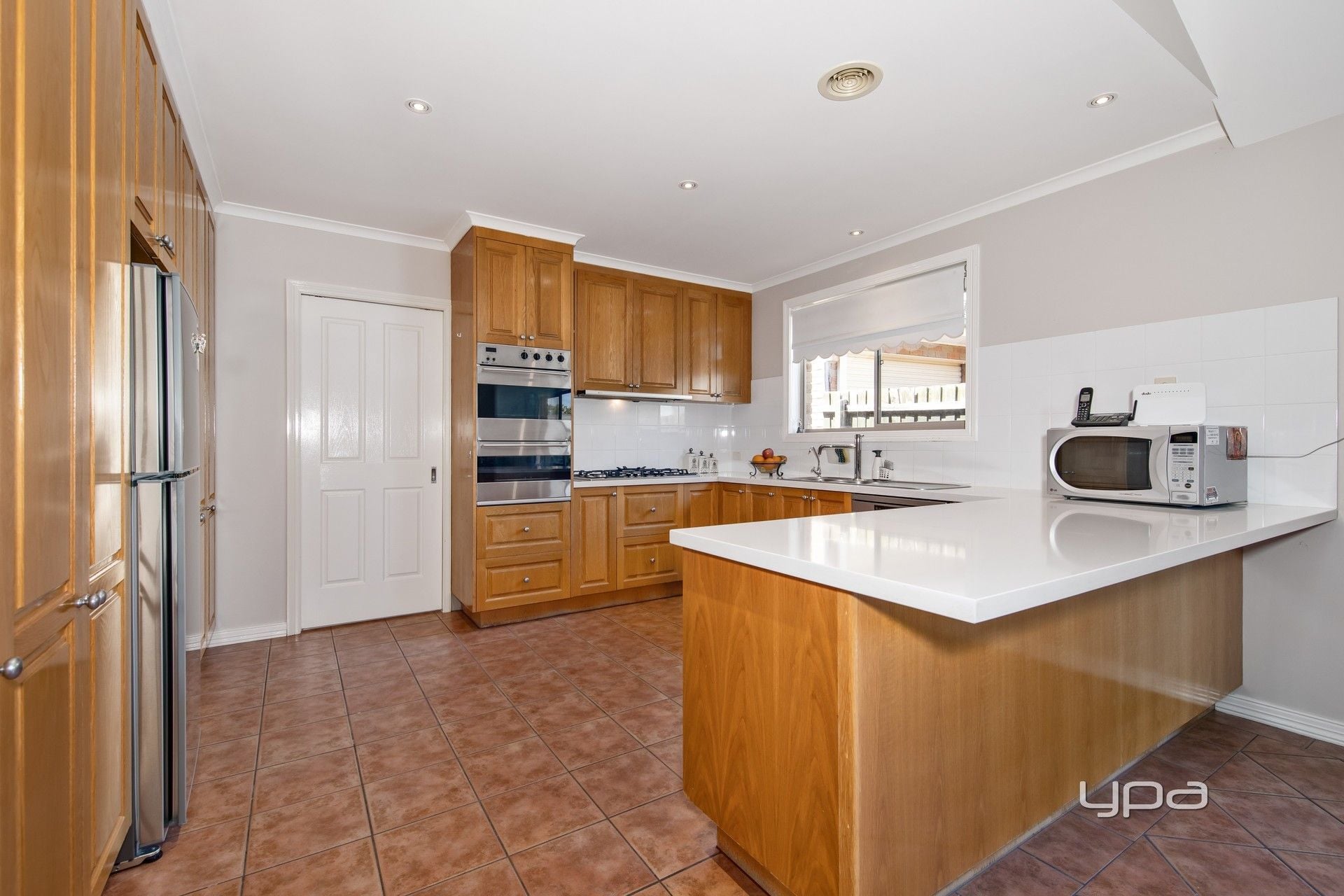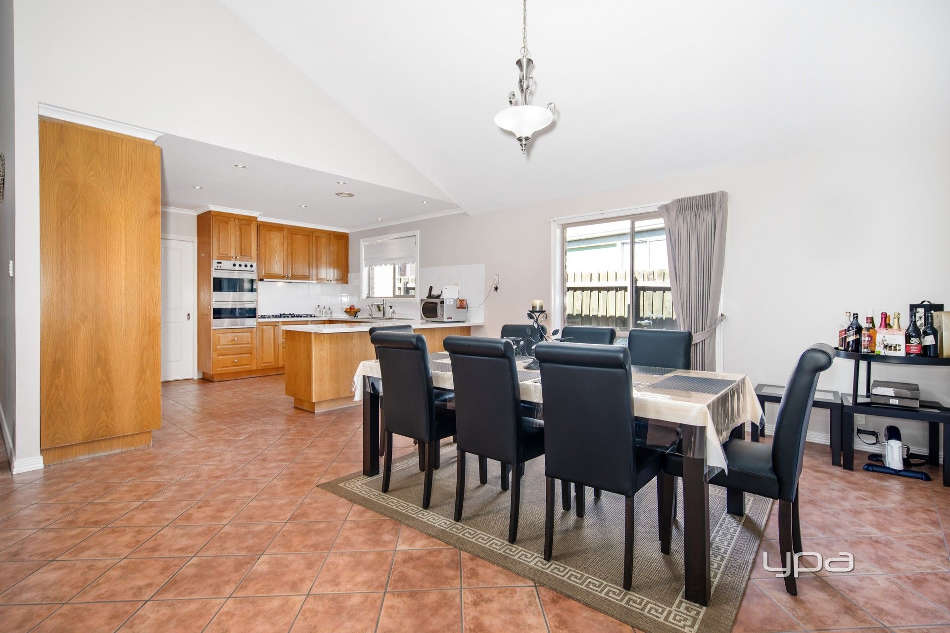 The heart of the home is the breathtaking American Oak kitchen, outfitted with premium Caesar stone benchtops and stainless-steel appliances. It overlooks the dining and family living area, making it perfect for entertaining and family gatherings.