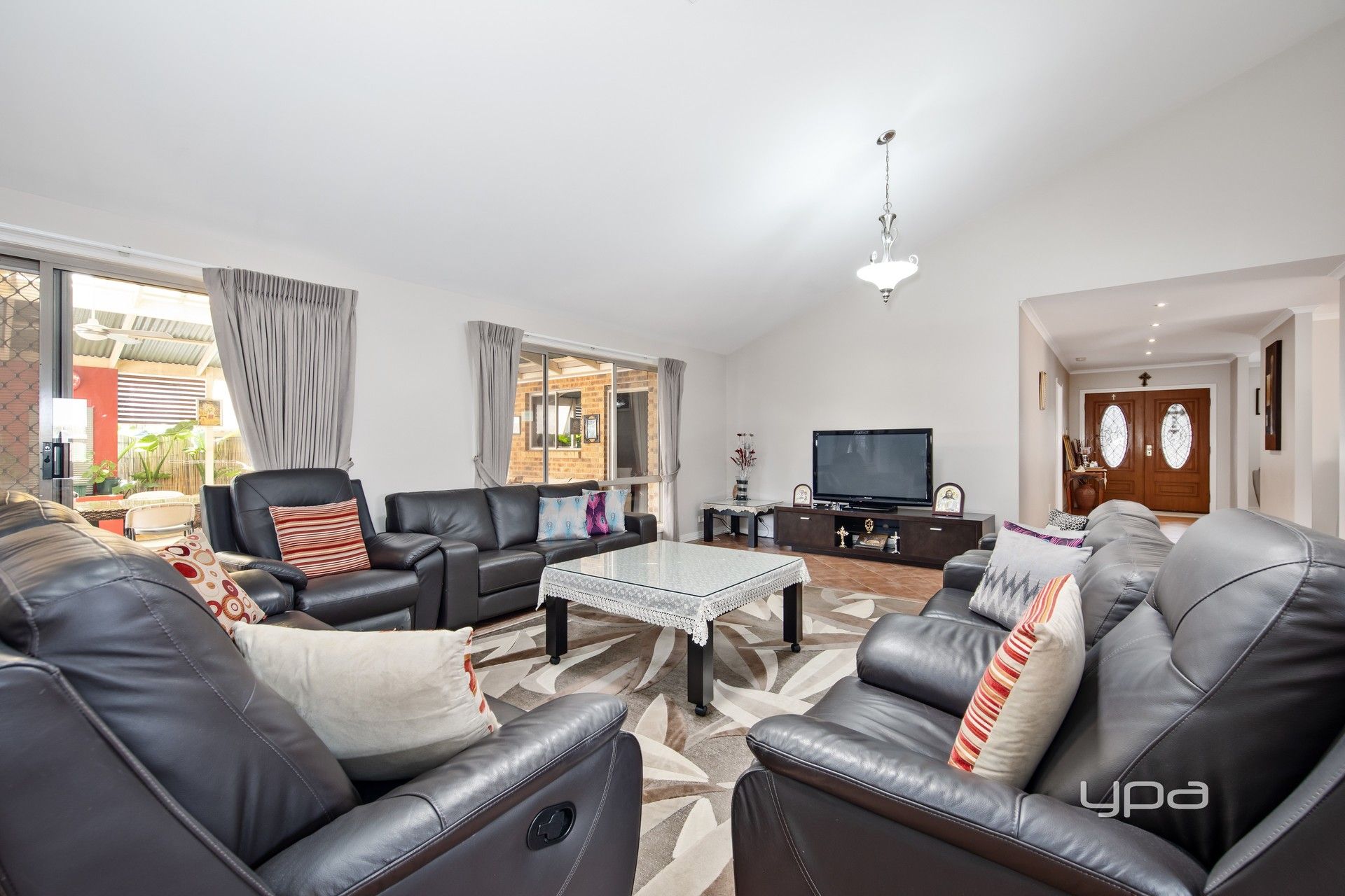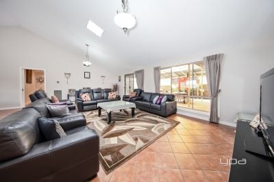 As you enter, you'll be greeted by a formal living area that sets the tone for elegance and comfort. The large open study flows seamlessly into the spacious open-plan living area, highlighted by impressive cathedral ceilings that create an airy, inviting atmosphere.