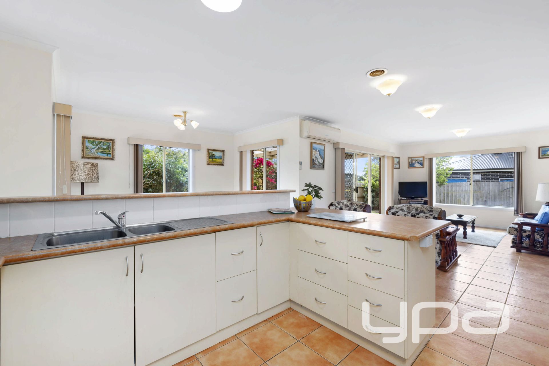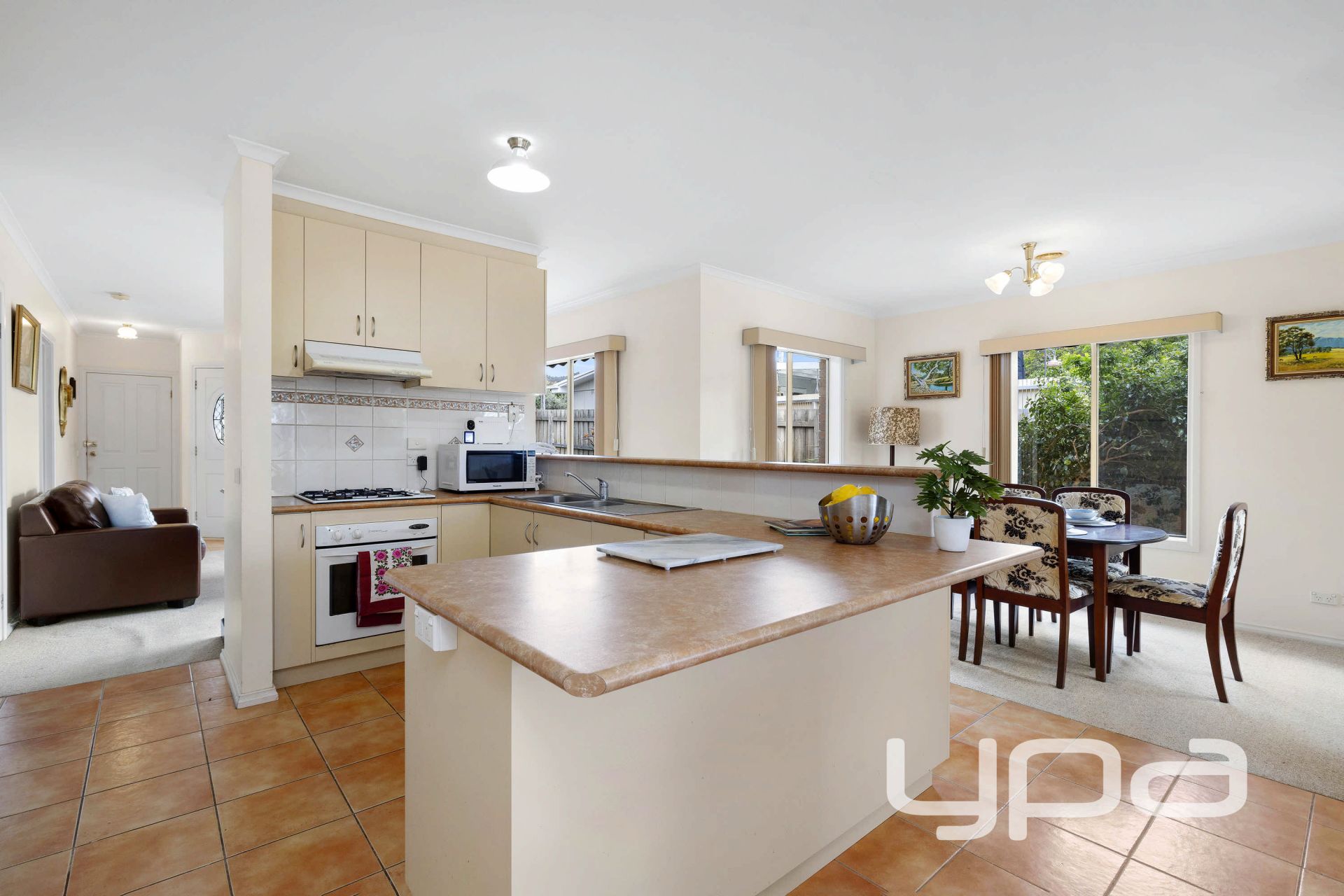 • Functional and well-appointed central kitchen offering ample cupboards, generous benchtop space, and a breakfast bar