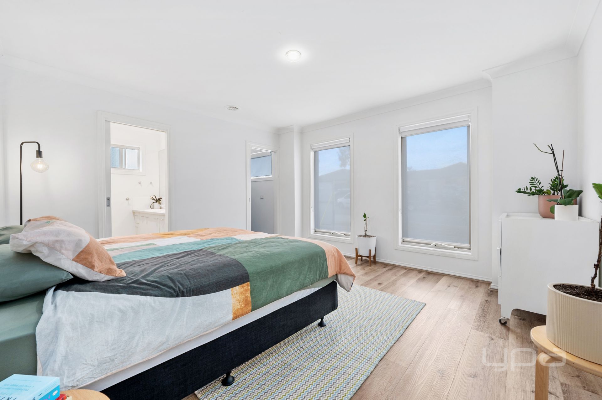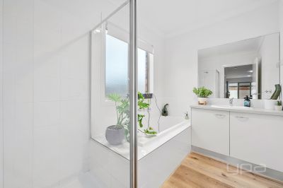 The home offers three generously sized bedrooms. The master suite is a true retreat, complete with a walk-in wardrobe and a beautifully appointed ensuite with double vanity. The two additional bedrooms are well-proportioned, each with built-in wardrobes, and are conveniently serviced by a bright and modern central bathroom.