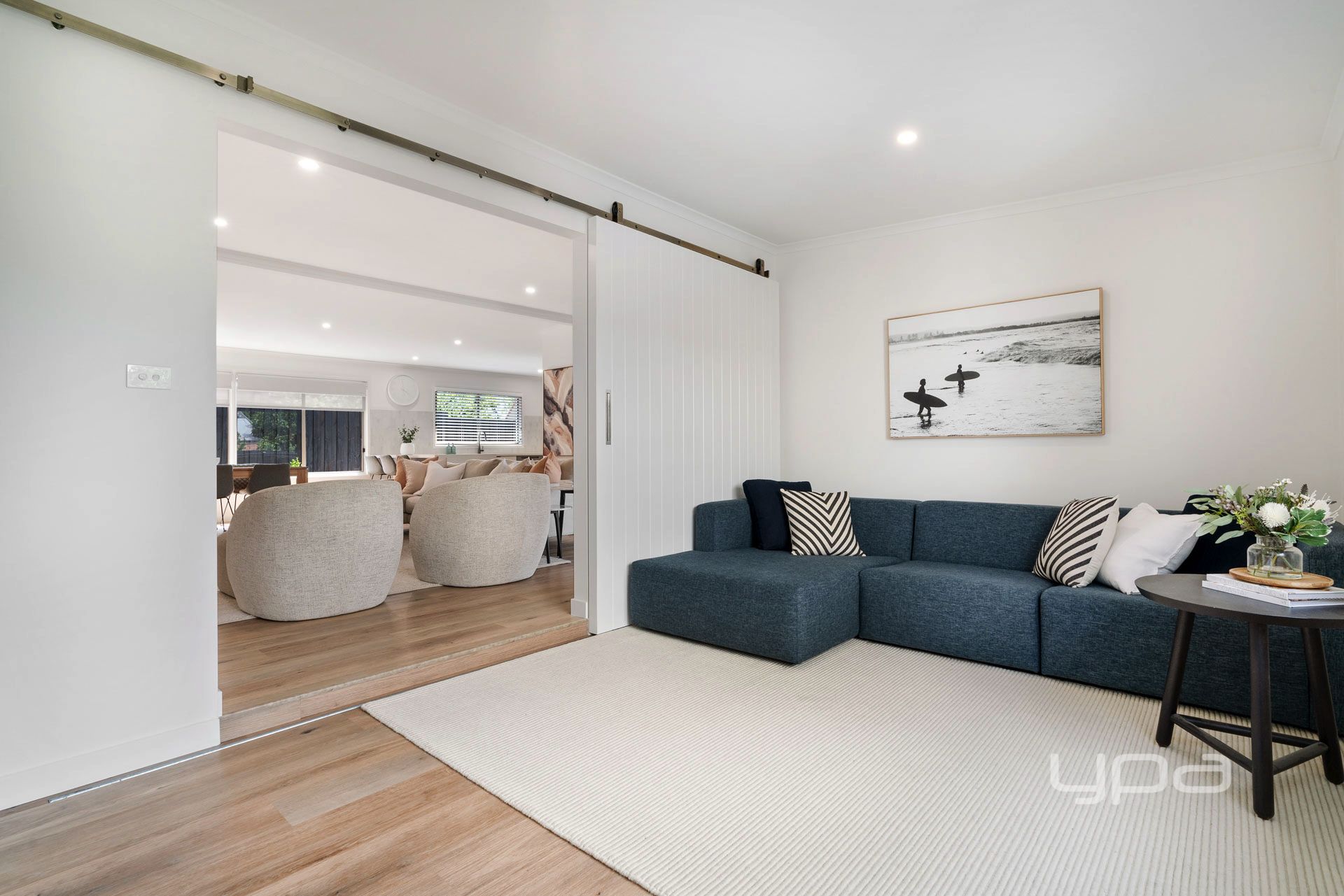 FLEXIBLE BEDROOM & LIVING LAYOUT: Perfectly configured for family flexibility, a fourth bedroom is adjoining a secondary living space, offering versatility as a guest suite, home office, playroom, or media room—a space that adapts to your family's changing needs.
