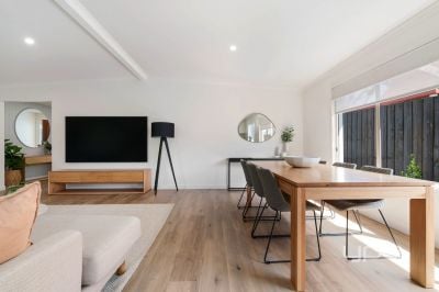 OPEN PLAN LIVING: The expansive open-plan living & dining areas are designed as the heart of the home. With plenty of space for family gatherings, movie nights, and homework sessions, it's ideal for bringing everyone together. Abundant natural light fills the area, adding warmth and a welcoming vibe that will make everyone feel instantly at home.