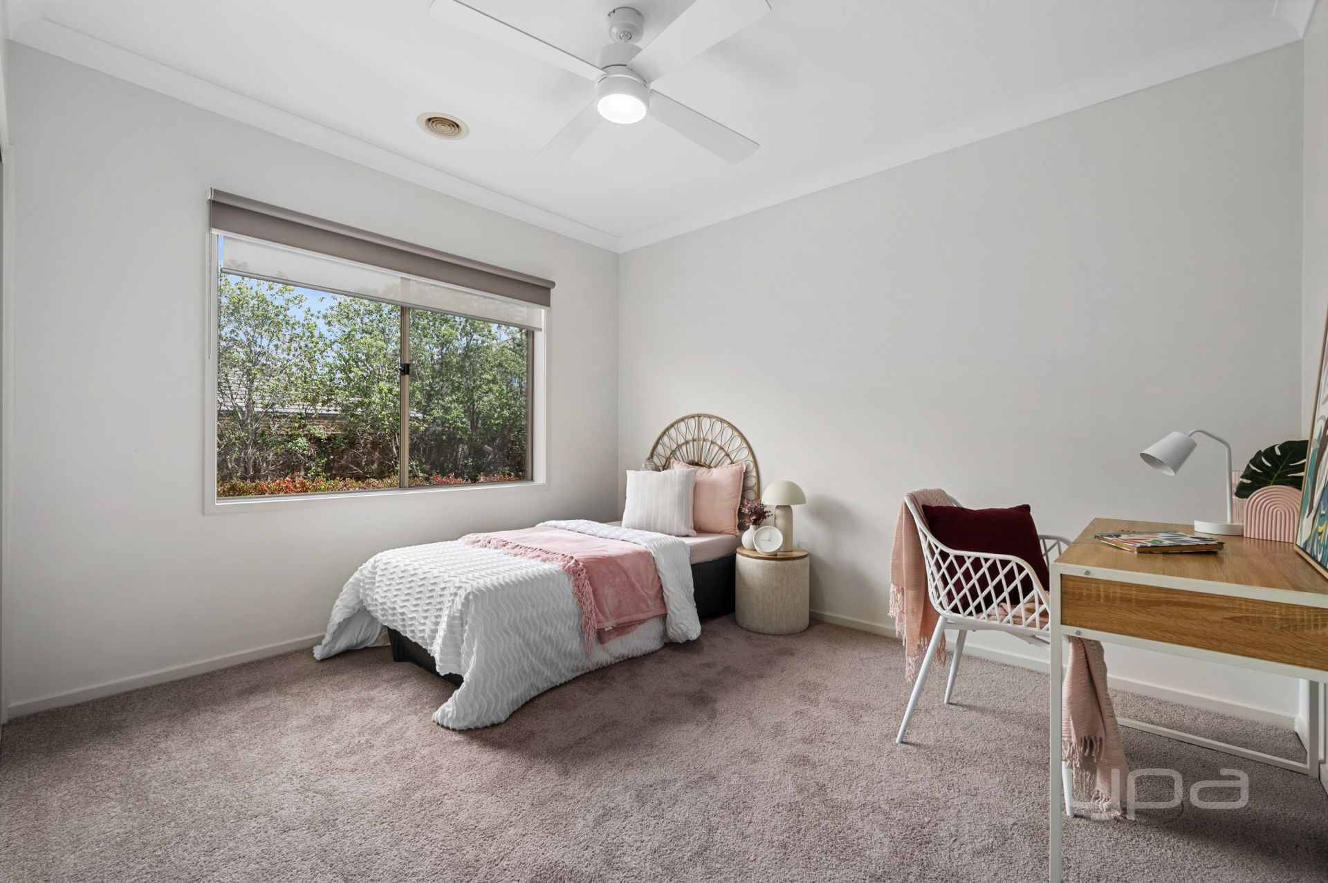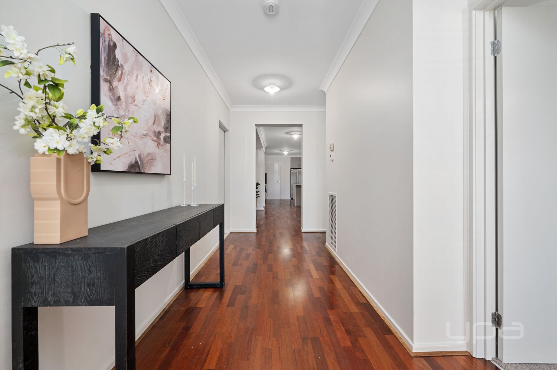 Entering this home you will be amazed by the space on offer, with soaring 9ft ceilings and hardwood floors setting the tone for the impressive home. You are then met with an oversized master bedroom boasting a ceiling fan and doubles blinds, it is then complete with a large walk-in robe and the spacious ensuite offers double vanity with waterfall stone benches, a bigger shower and separate toilet.