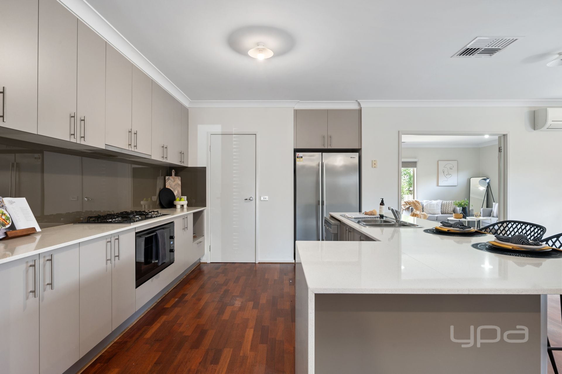 Moving through the home, you will find the theatre room which is perfect for the family movie nights. The heart of the home hosts a huge open plan setting with the large lounge, huge dining and right in the middle is the stunning kitchen. Boasting luxury modern inclusions including: overhead cabinets, stone benchtops with waterfall finish, 900mm gas cooktop, brand new 900mm undermount oven, dishwasher, upgraded feature splash back, walk-in pantry and plenty of cupboard space.