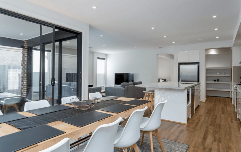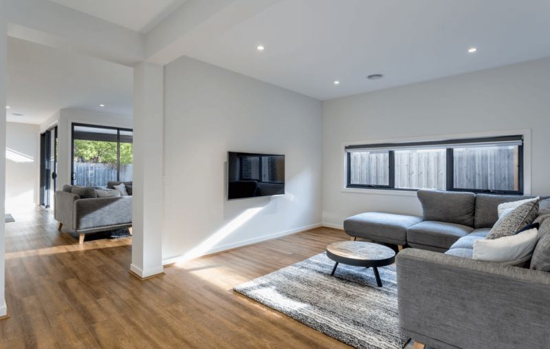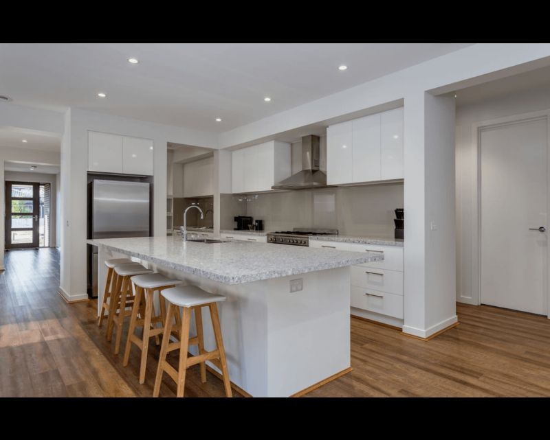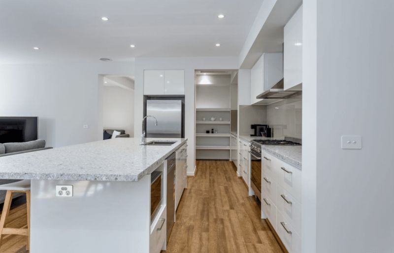 The living areas feature elegant floorboards, creating a stylish and easy-to-maintain space.