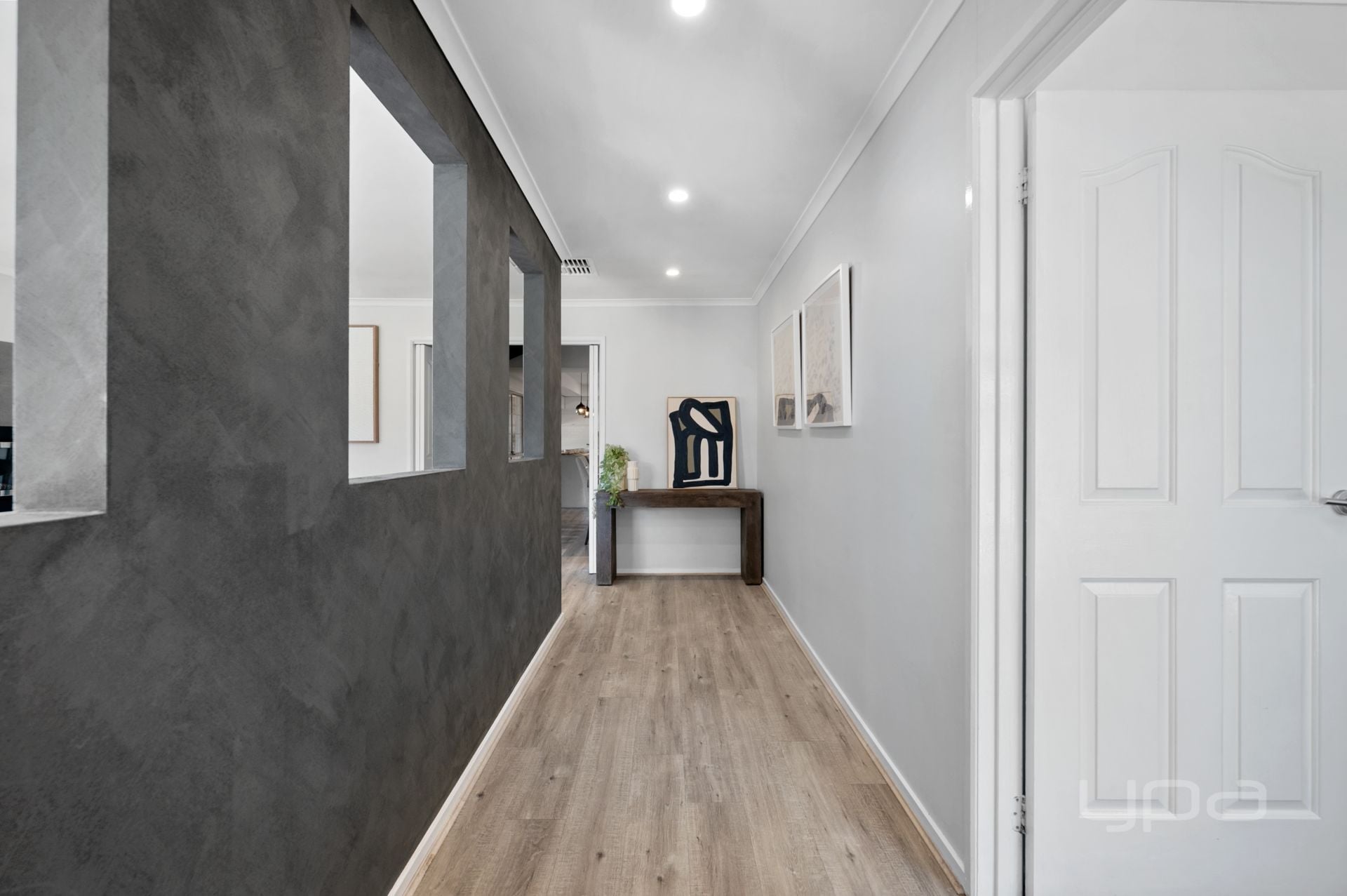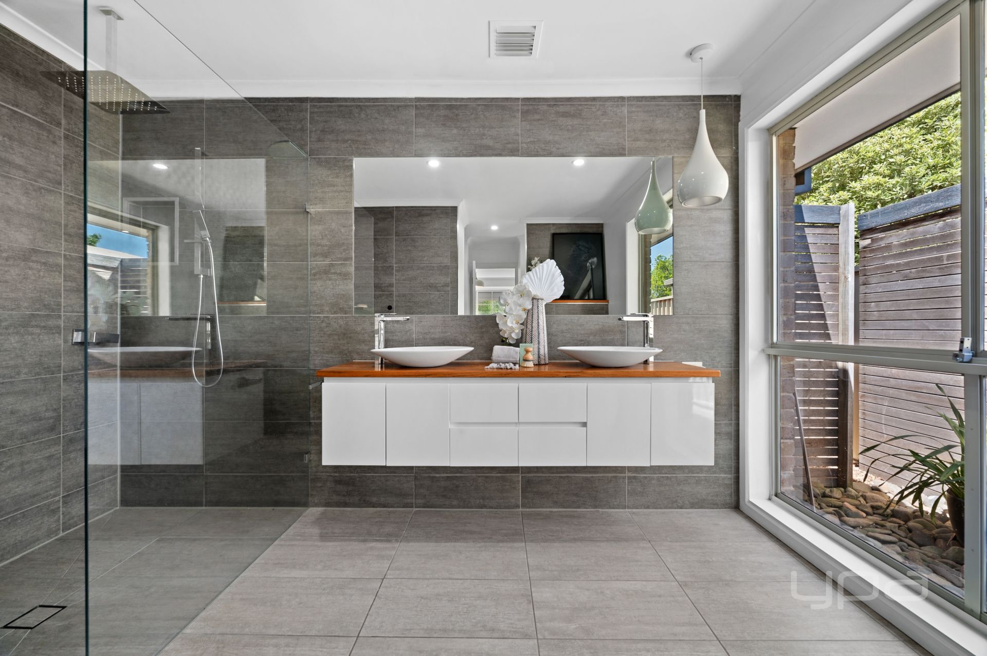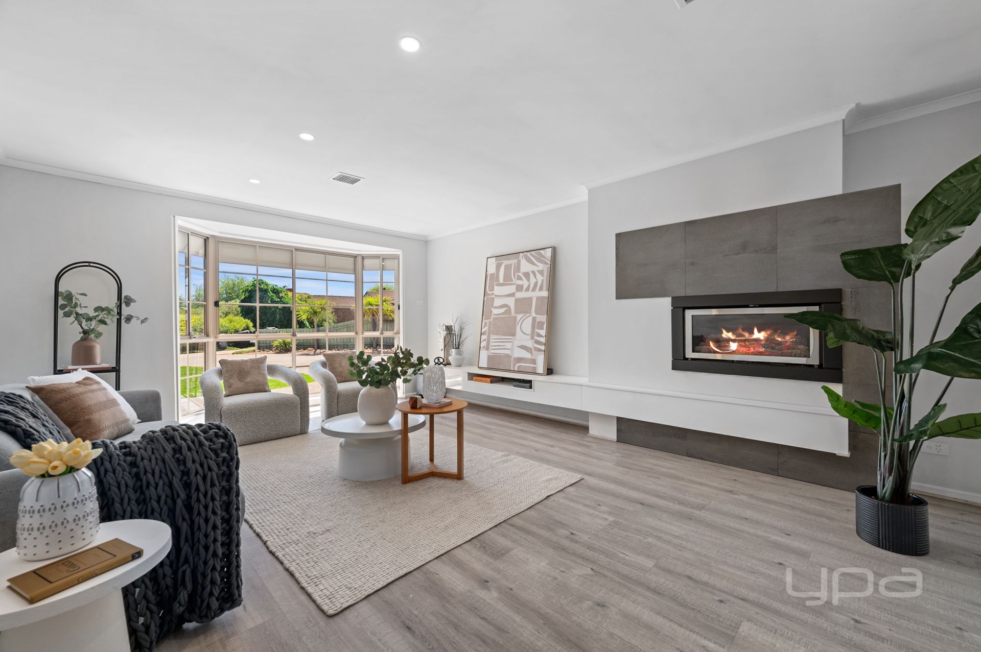 Upon entering you are met with the foyer with feature cut outs, the huge master bedroom boasting a bay window and timber panel feature wall. The bedroom also features a huge walk-in robe with upgraded fit out and a stunningly renovated ensuite boasting floor to ceiling tiles, floating vanity with two sinks, walk-in shower with dual shower heads and a backless toilet. As you move through the home you are greeted with a huge lounge room featuring another bay window allowing plenty of natural light to flood the space, while the property offers ducted heating and evaporative cooling there is a gas fireplace in the lounge room for those cozy movie nights with the family.