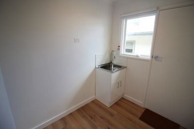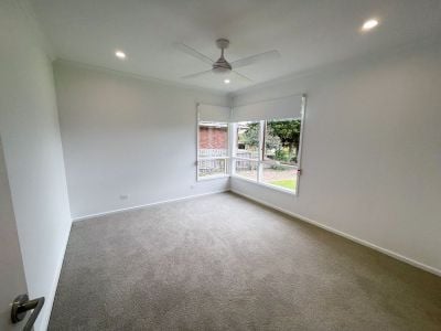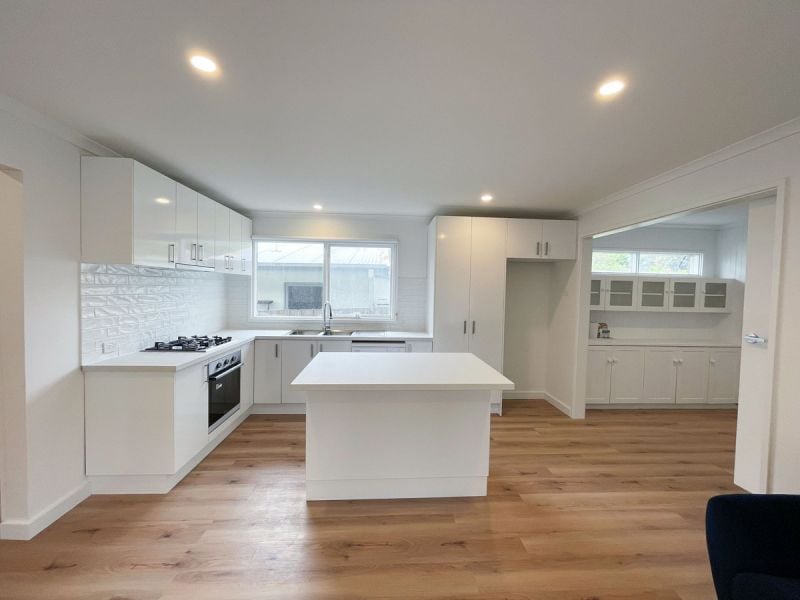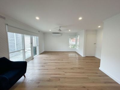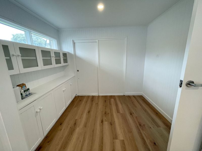 Renovated interior with new flooring, fresh paint, and roller blinds throughout