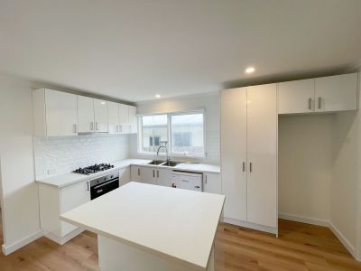 Modern kitchen featuring ample cupboard space, brand-new appliances and benchtops