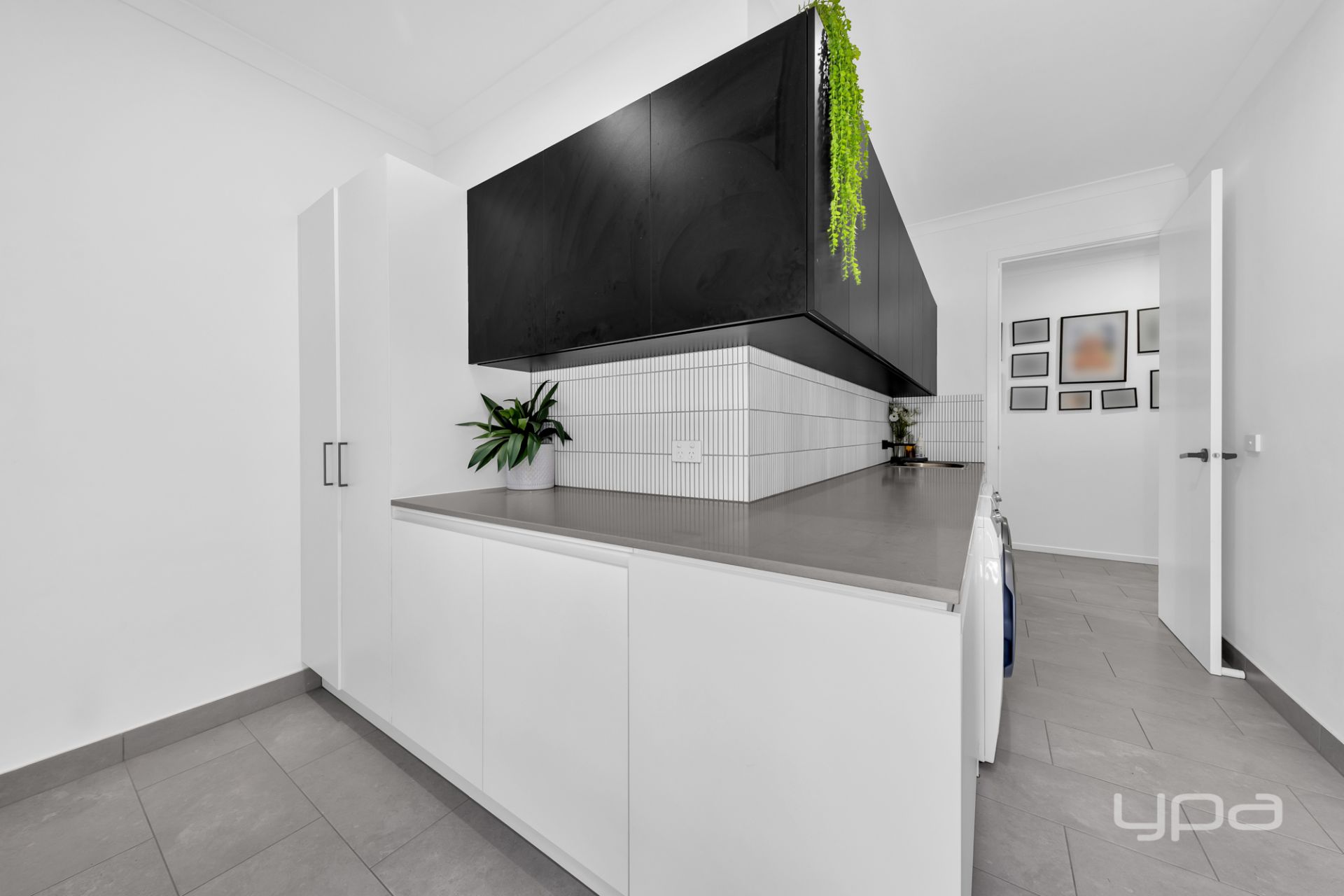 A massive laundry with ample storge.