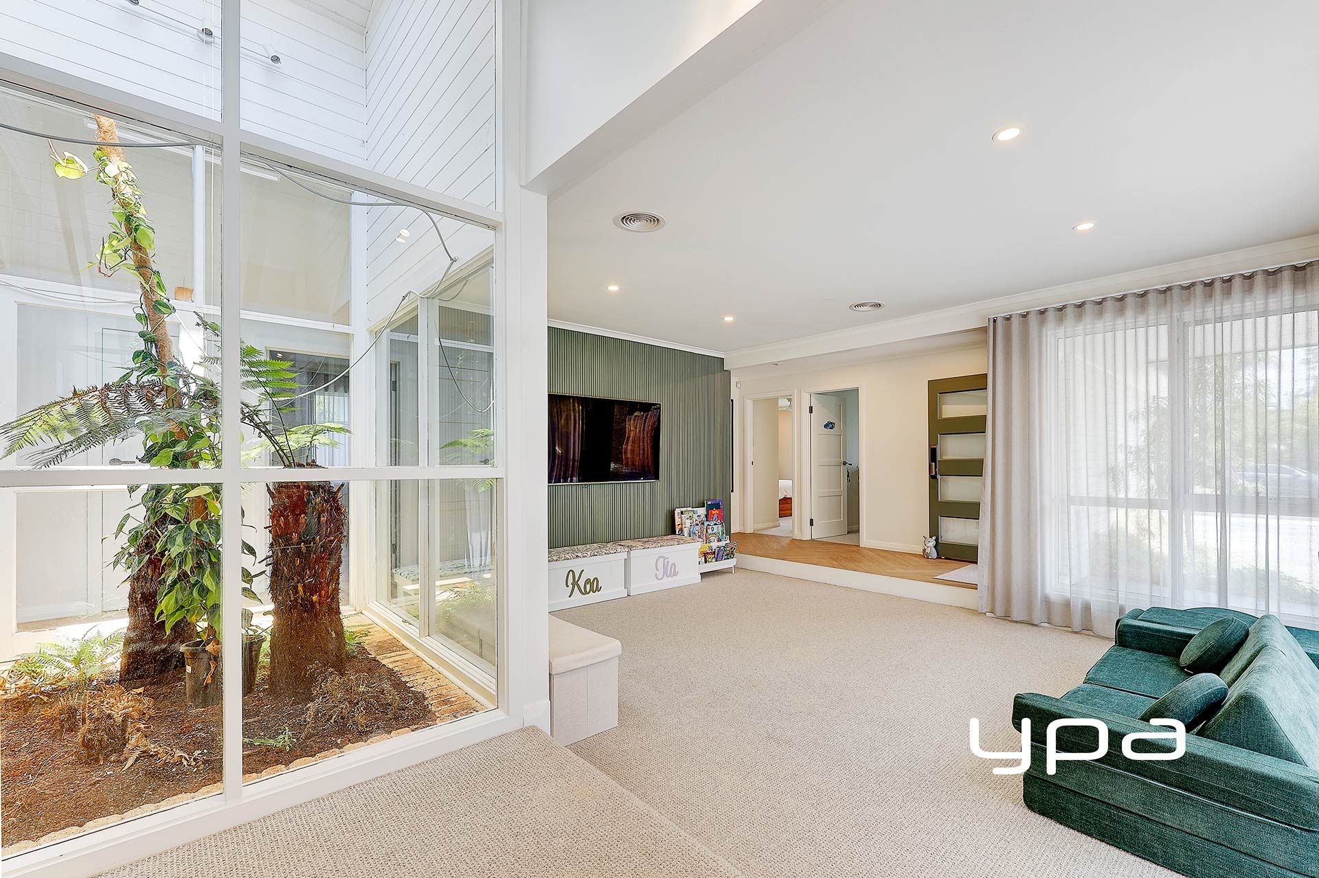 • A unique atrium that blends indoor and outdoor elements is the centrepiece of the home.