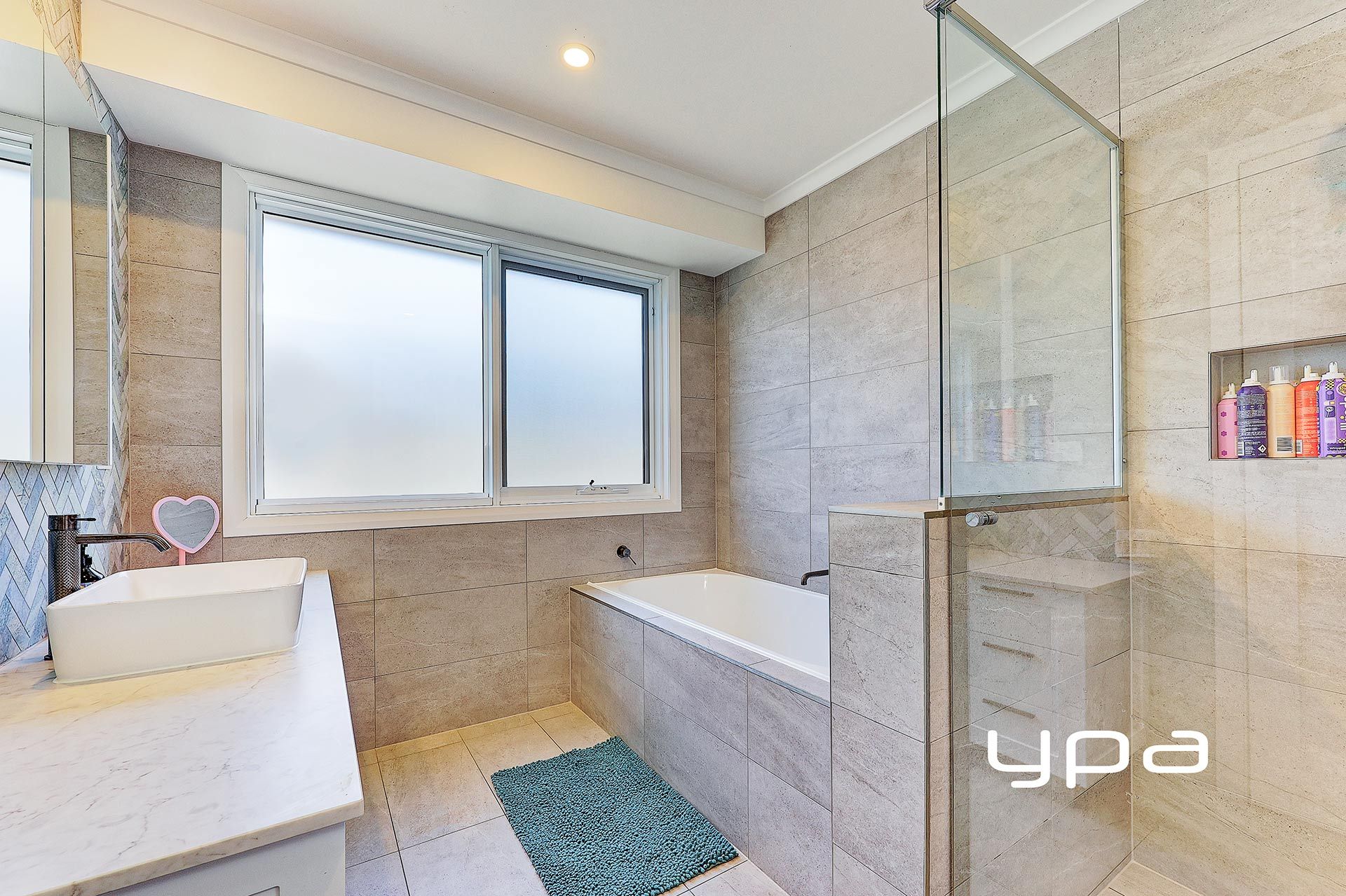 - Stylish pewter tapware throughout