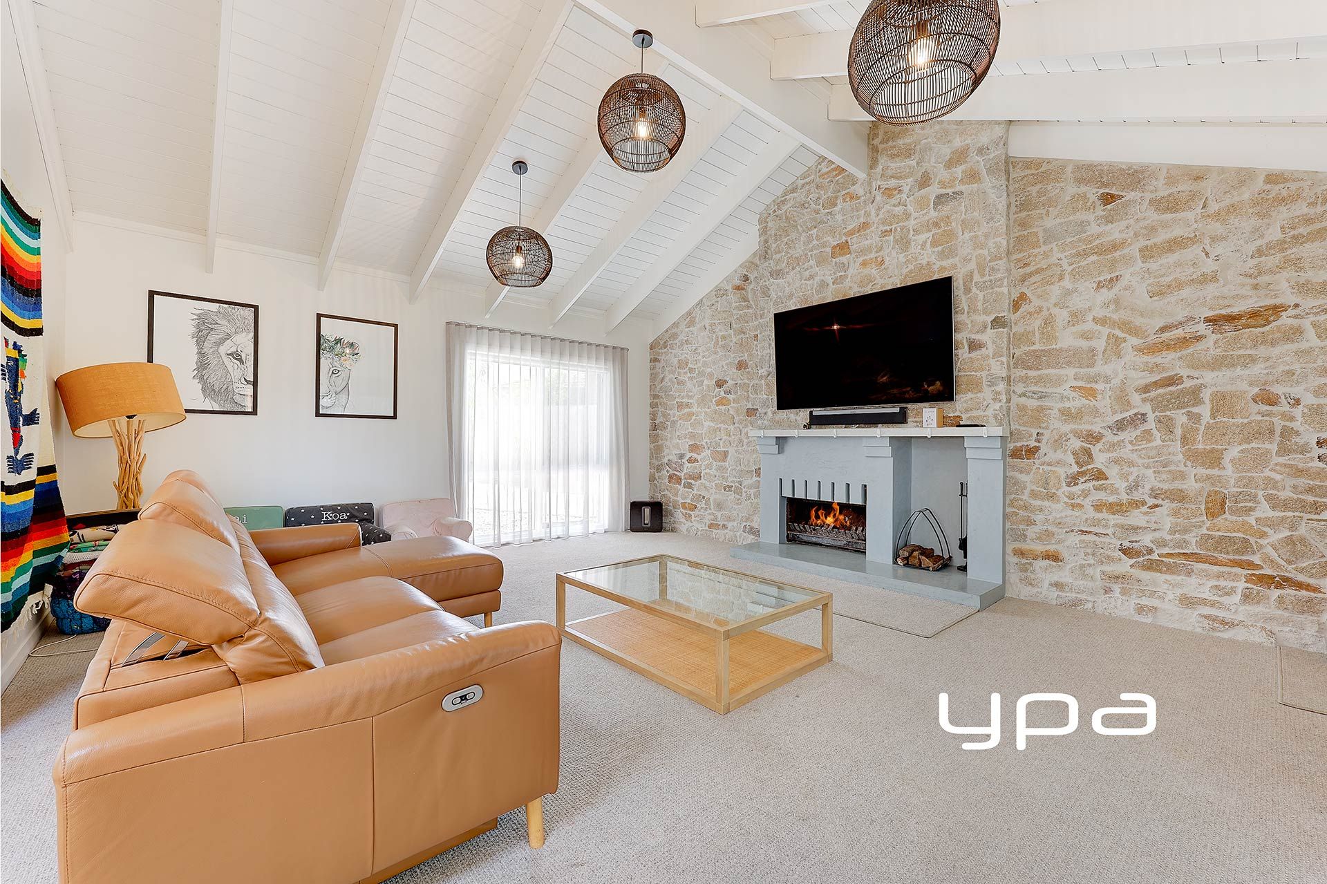 • Step down and relax in the family living area with its resplendent fireplace.