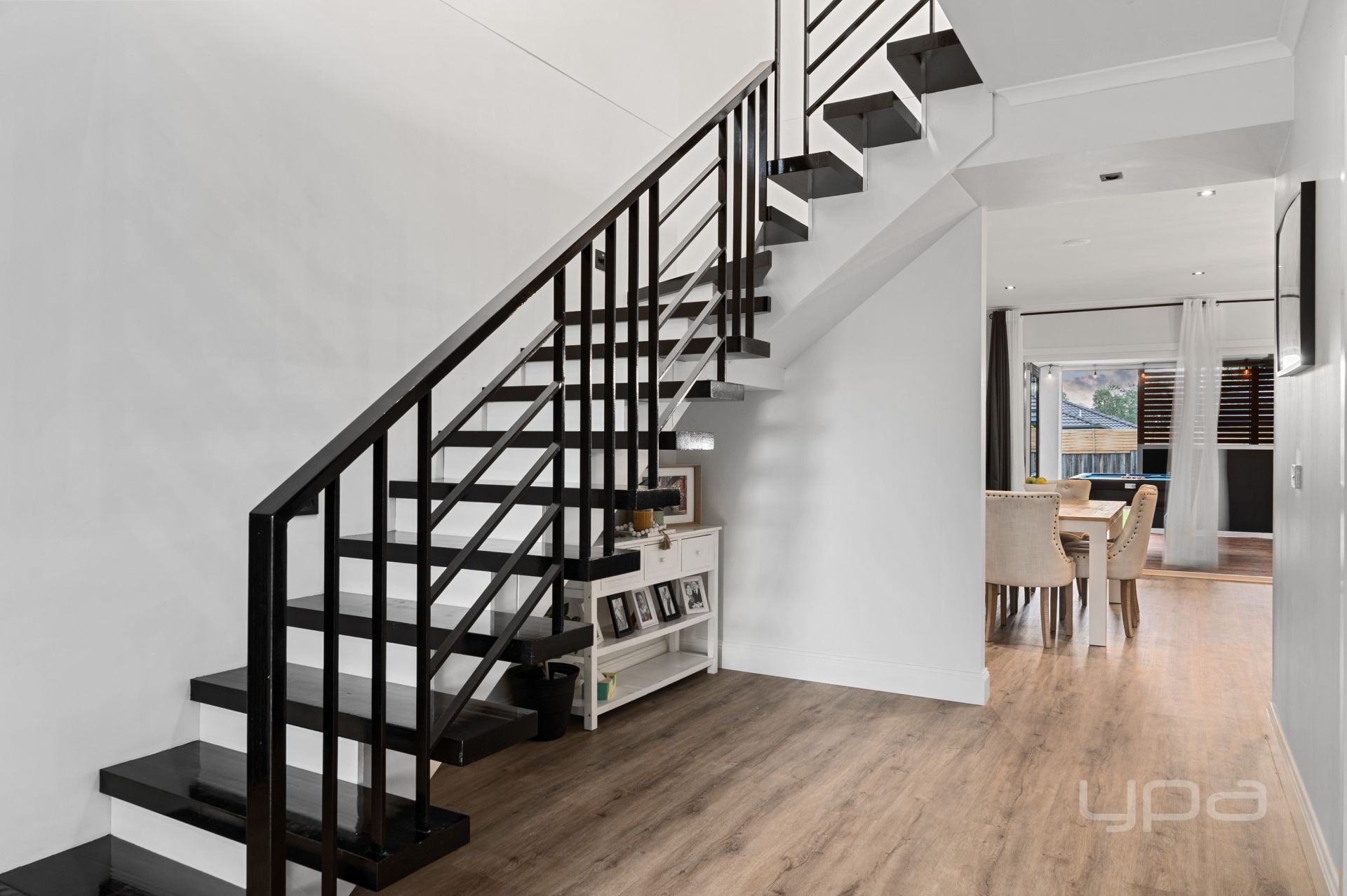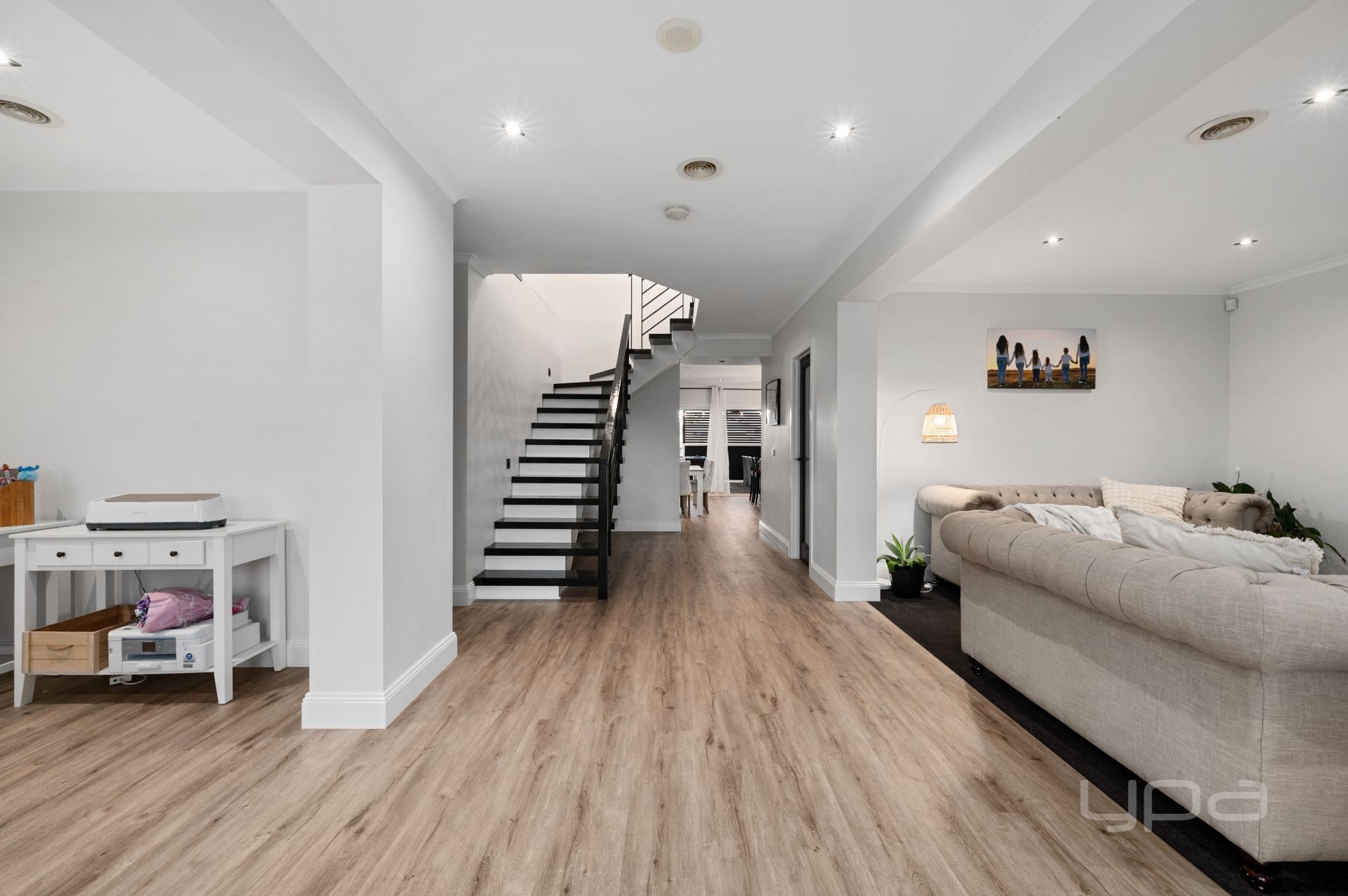 Upon entry you will be wowed with the space on offer, the modern floorboards, higher skirting board and unique partially floating staircase will impress everyone that enters the home. You are then met with the large formal living area, which holds plenty of space for the whole family to enjoy while the gas fireplace provides warmth for those cozy family movie nights. Adjacent to the living area is open study which is the perfect space to work from home or the kids to do their homework. As you move through you will find the downstairs powder room, and the laundry which has the internal access to the oversized garage.