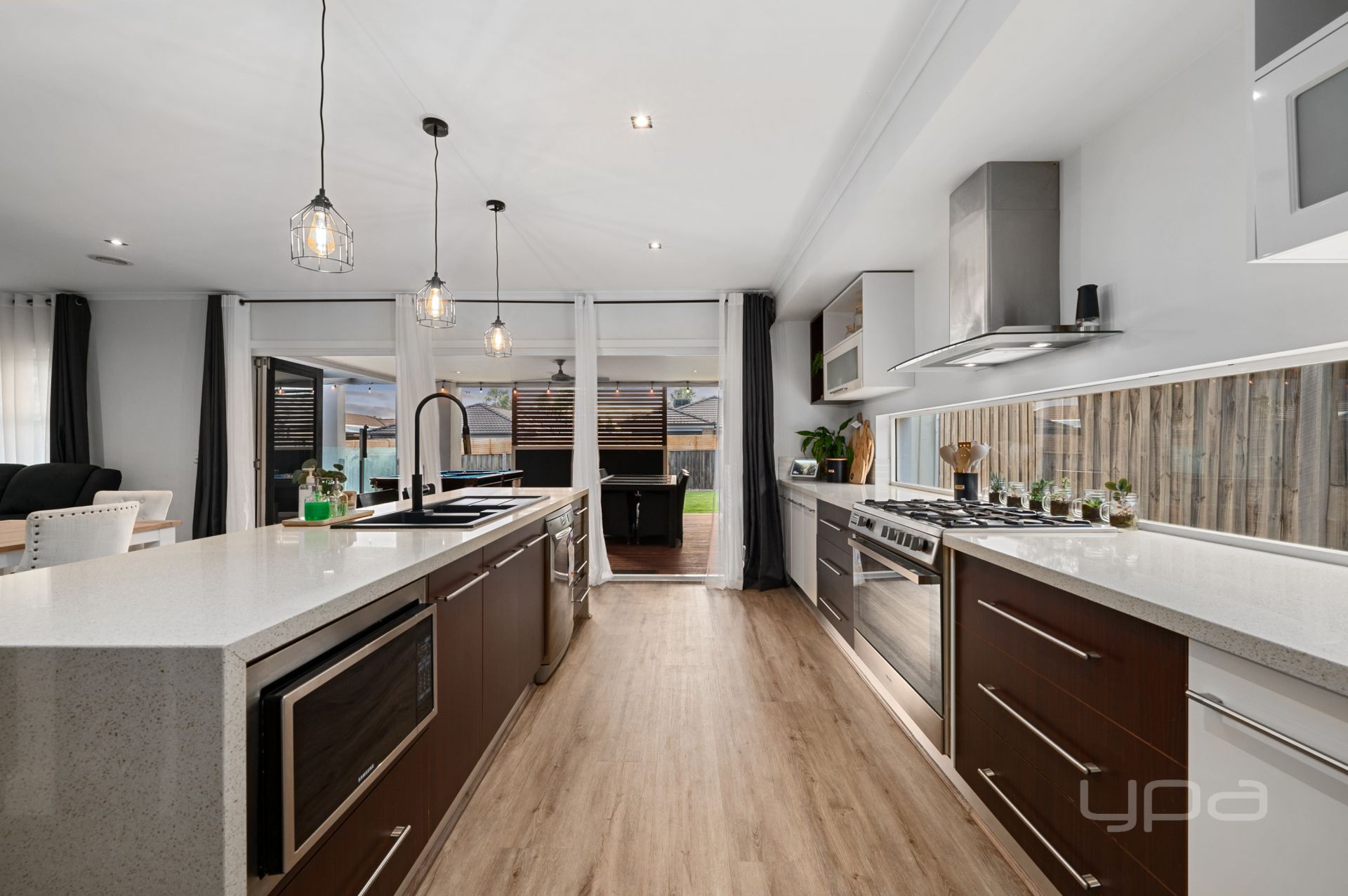 The main area of this fantastic family home features a large open plan living and dining space providing an ideal space for the whole family to enjoy. This is conveniently overlooked by the gorgeous kitchen, which boasts upgraded double sink, ample bench and cupboard space, 900mm appliances, dishwasher, 40mm stone benchtops with waterfall finishes, in built microwave and a stunning butler's pantry providing ample storage space.
