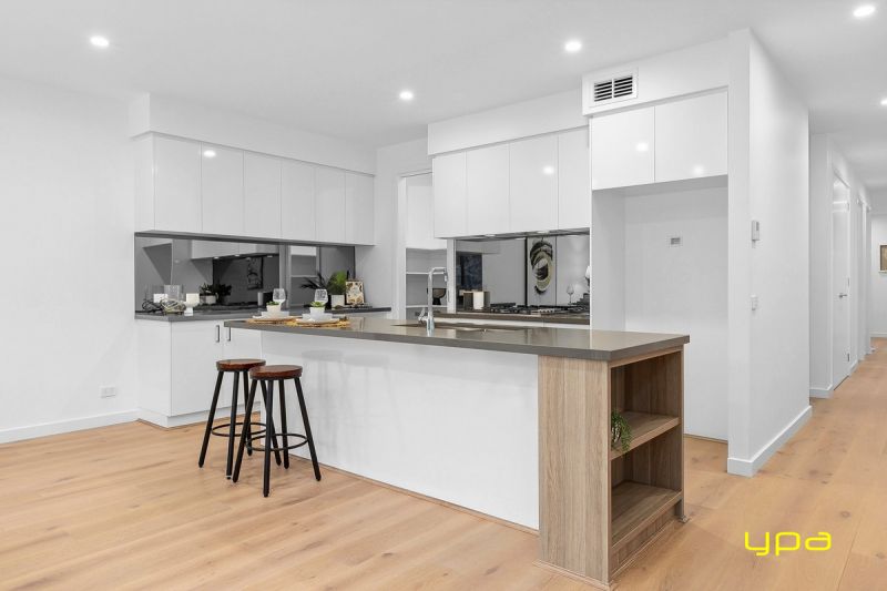 Overlooking this vibrant space is the beautifully designed kitchen, a chefs dream. Featuring a generous island bench, sleek stone bench-tops, a stylish mirrored splash-back, premium Smeg stainless steel appliances, and a walk-in pantry, it perfectly balances elegance and practicality.