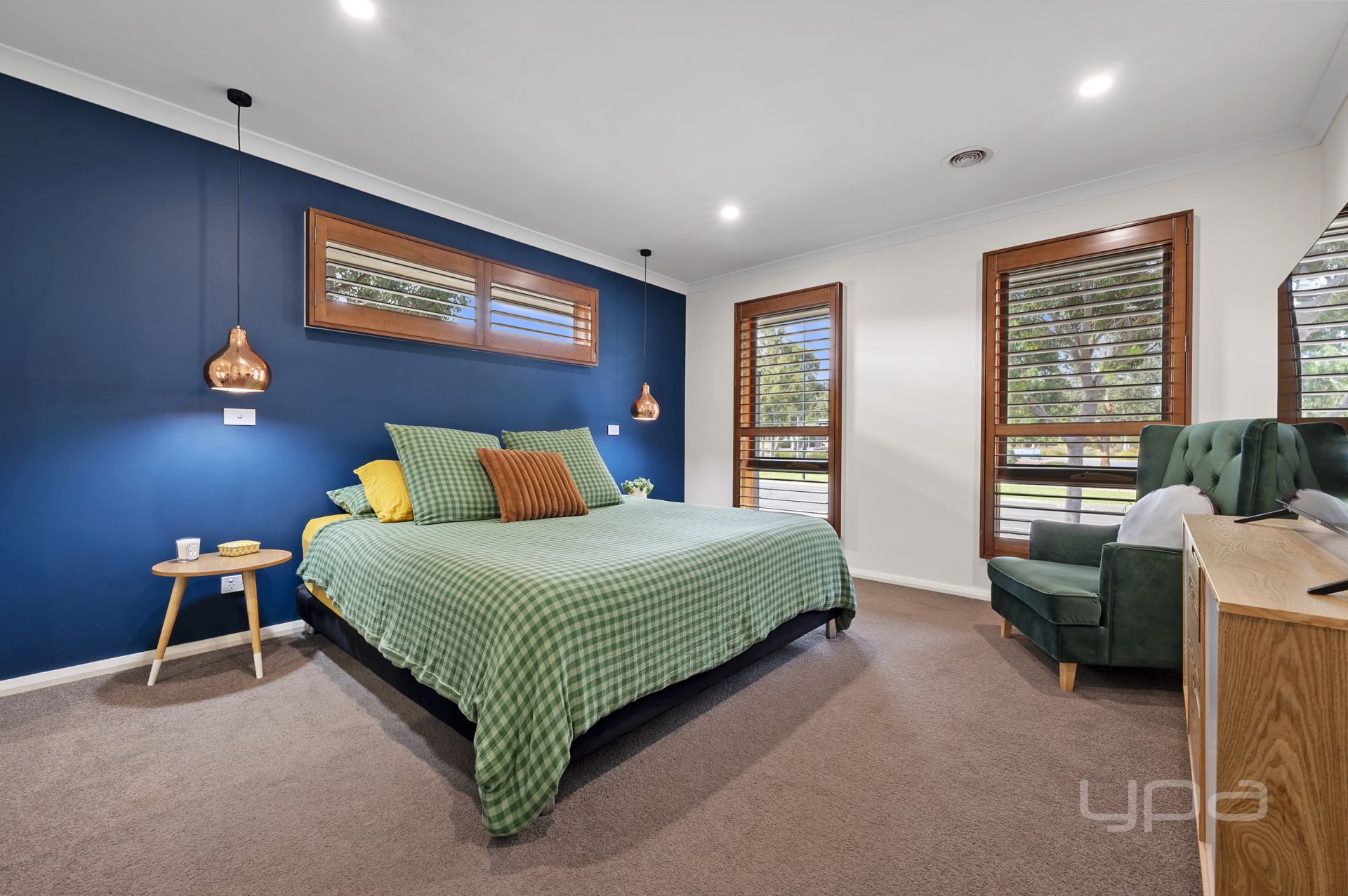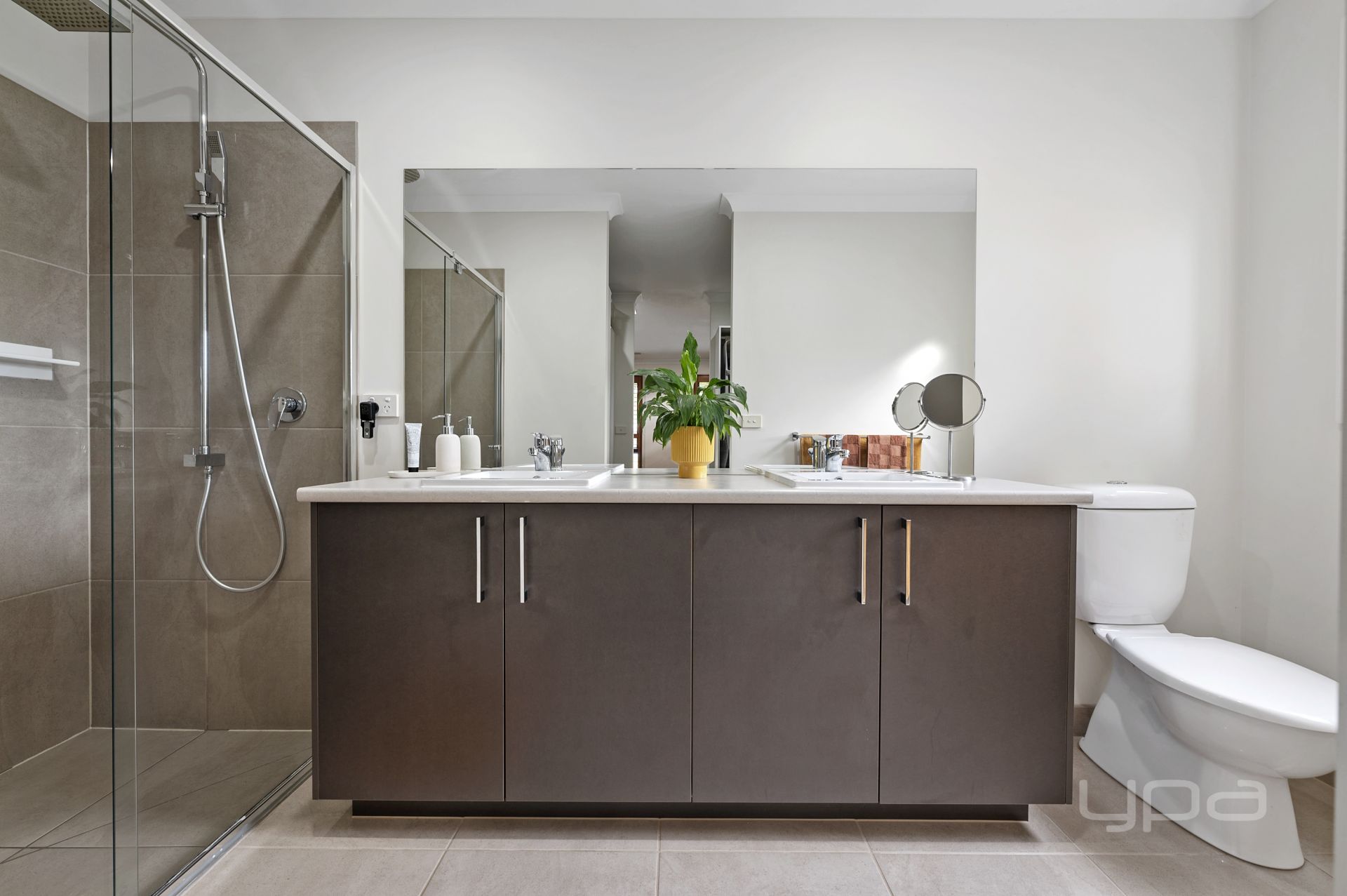 Upon entering the home, you'll be greeted by the impeccably presented master bedroom, complete with elegant plantation shutters and a his-and-hers walk-in robe leading you through to the bright ensuite, featuring a natural colour scheme, double vanity, and an oversized shower with dual shower head.