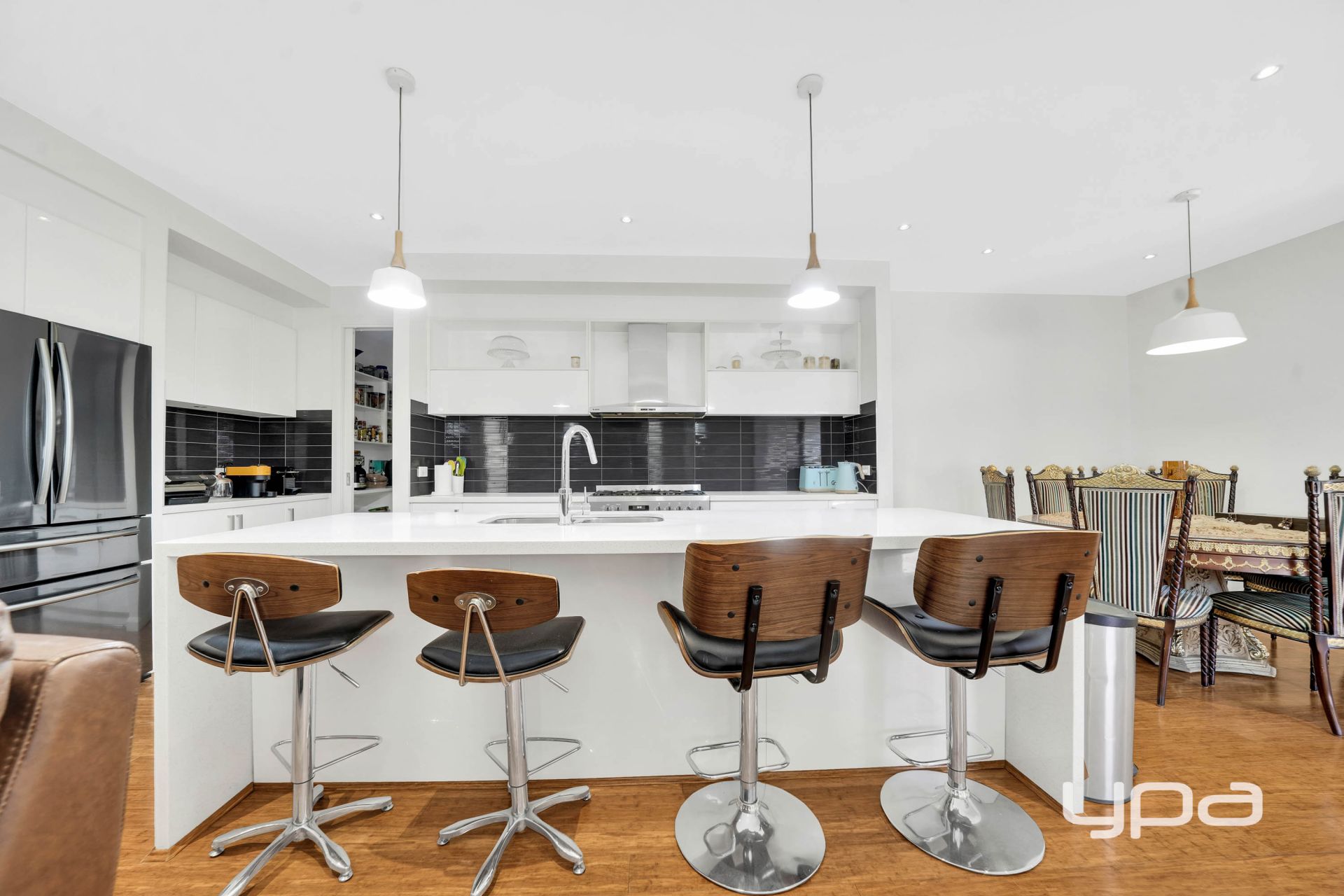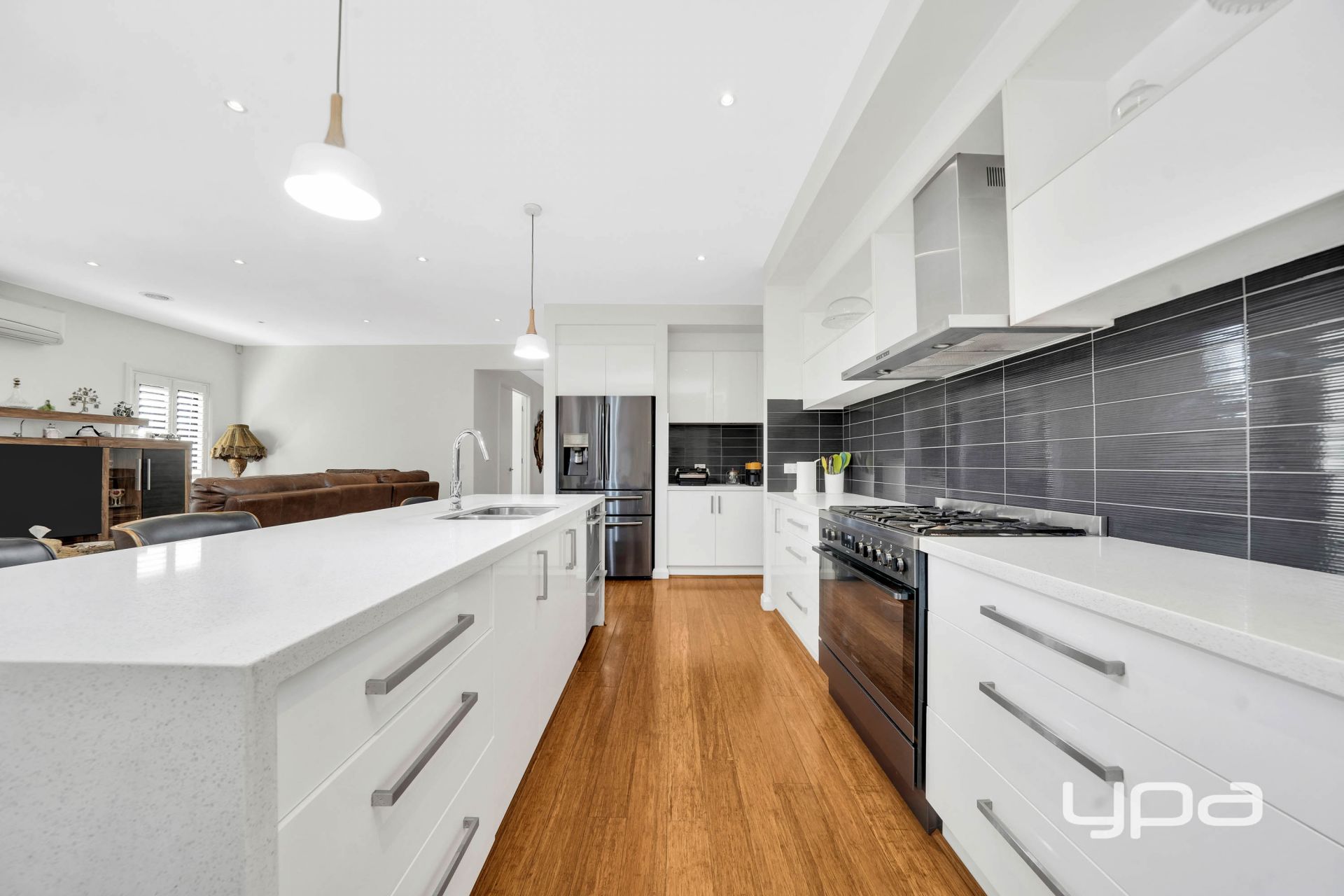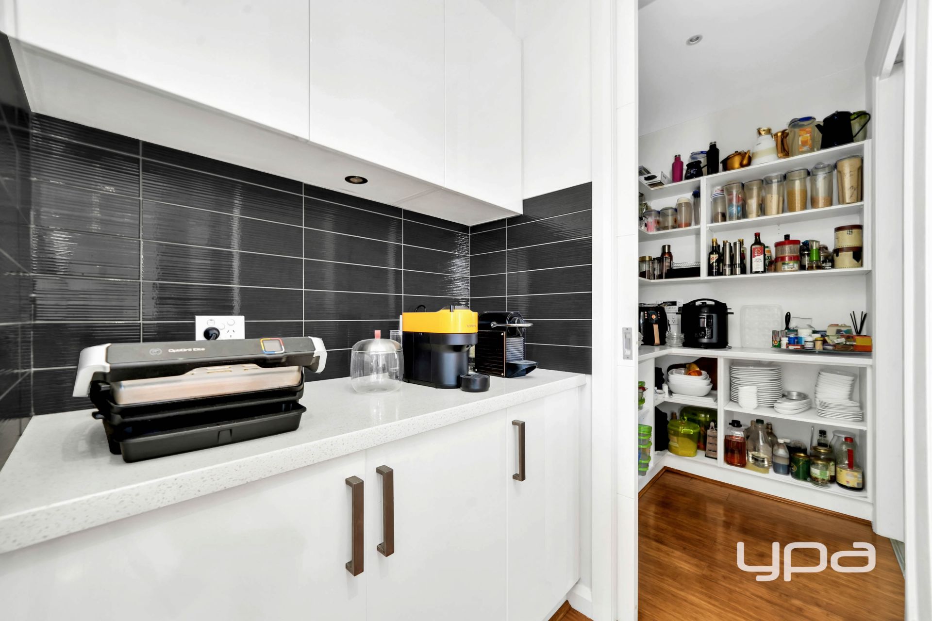 • Designer kitchen with walk-in pantry, tiled splashbacks, and quality appliance