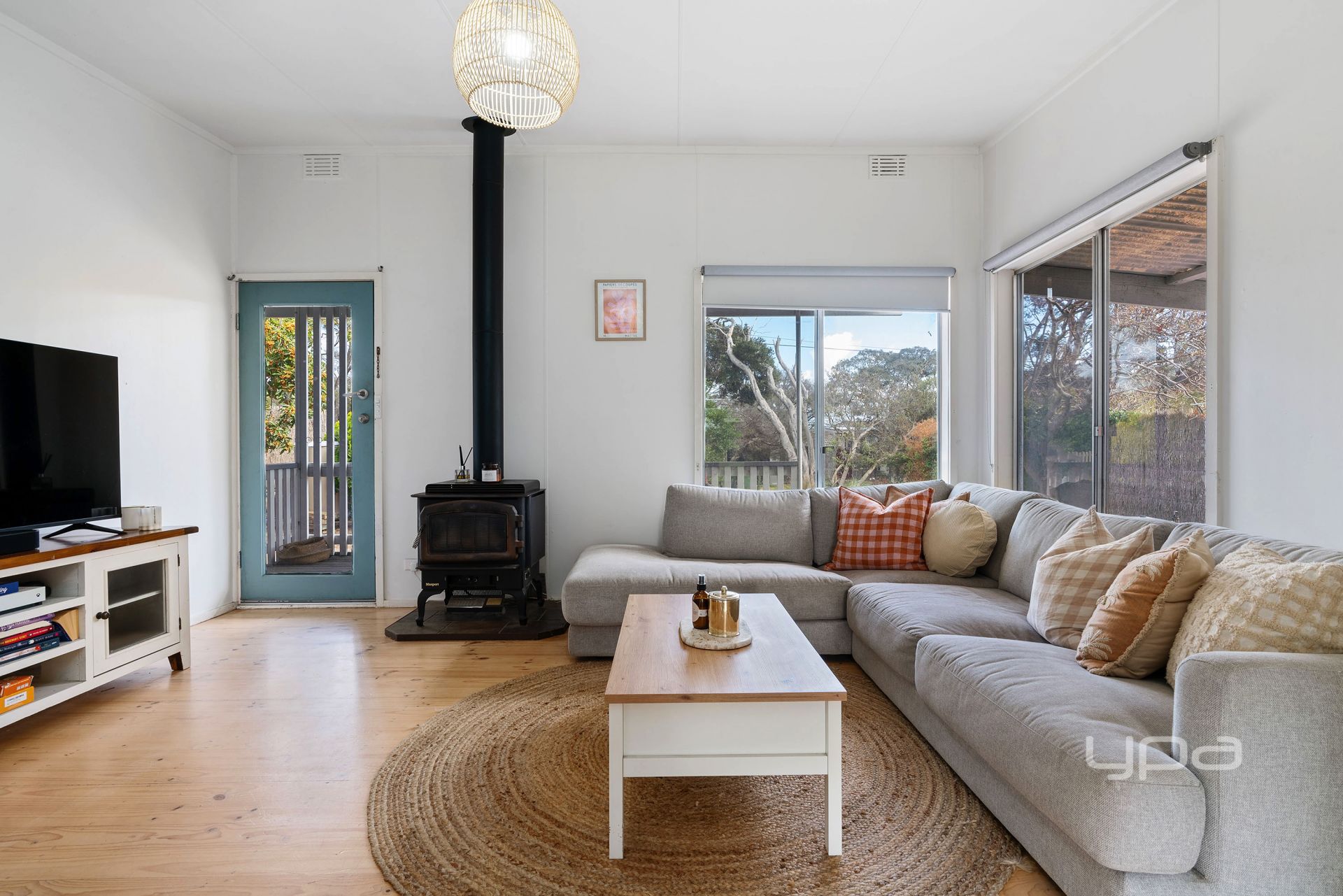 Set on a generous 697sqm (approx), level allotment, the home is filled with warmth and character. A wood-burning fireplace anchors the inviting living area, creating a cosy hub to gather after long beach days. Natural light floods the interiors, amplifying the relaxed coastal feel throughout the three well-proportioned bedrooms and original central bathroom.